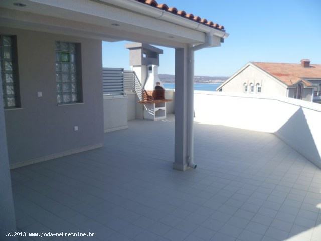 ODLIČNA NOVOGRADNJA 200 METARA OD MORA.APARTMAN U VLASNIŠTVU IMA VELIKU KROVNU TERASU NA KOJOJ SE NALAZI KUĆICA SA KUPAONICOM,GRILL I SA KOJE SE PRUŽA NEZABORAVAN POGLED NA MORE I SELCE.TERASA JE OGRAÐENA I INTIMNA.