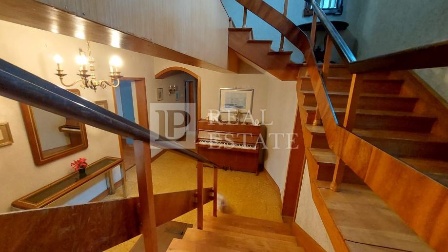 U prizemlju se nalaze spremište, garaža, kotlovnica i konoba s kuhinjom. Na 1. i 2. katu se nalazi prostrani dvoetažni stan.