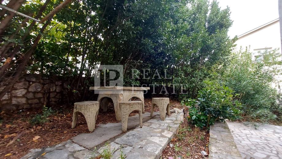Okružuje ju prostrana okućnica unutar koje se nalaze brojna parkirna mjesta, vrt i terasa s roštiljem. Okućnica je potpuno ograđena i pruža privatnost.