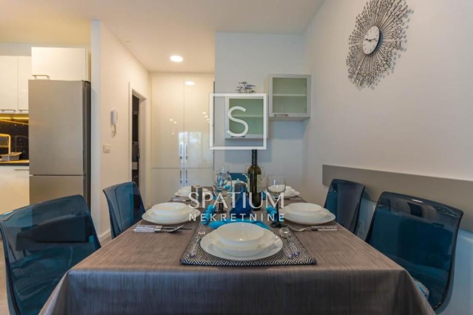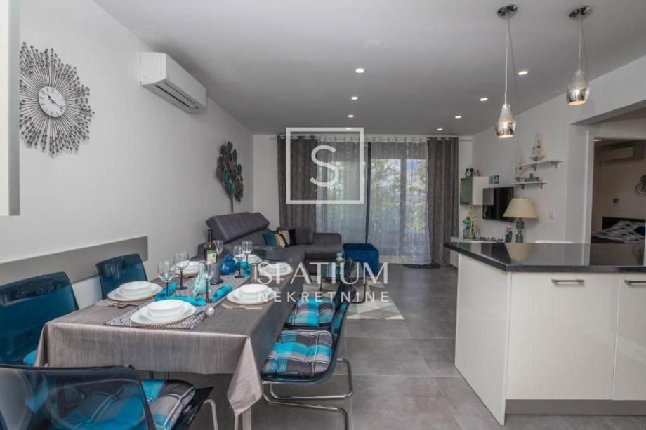 SELCE, u ponudu smo dobili stan na izvrsnoj lokaciji površine 66 m2. Sastoji se od open space dnevnog boravka, kuhinje i blagovaonice, dvije spavaće sobe, kupaone, odvojenog toaleta te lođe s pogledom na more. Stanu pripada jedno parkirno mjesto. U blizini se nalaze teniski tereni, park i priroda stoga je idealan za sve one koji uživaju u sportu i aktivnom načinu života. Zbog svoje lijepe lokacije i blizine mora koje je samo 90 m udaljeno ova nekretnine predstavlja odličnu priliku za bavljenje turističkom djelatnošću kao i za miran obiteljski život.