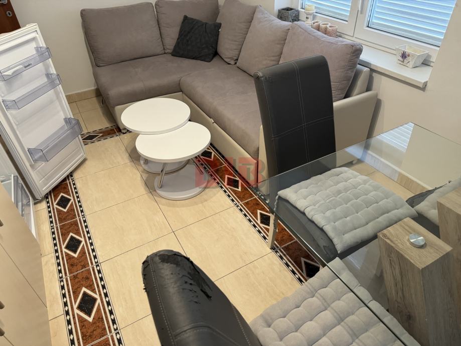 Stan-apartman se sastoji od hodnika,2 spavaće sobe,kuhinje sa blagovaonicom i balkona.