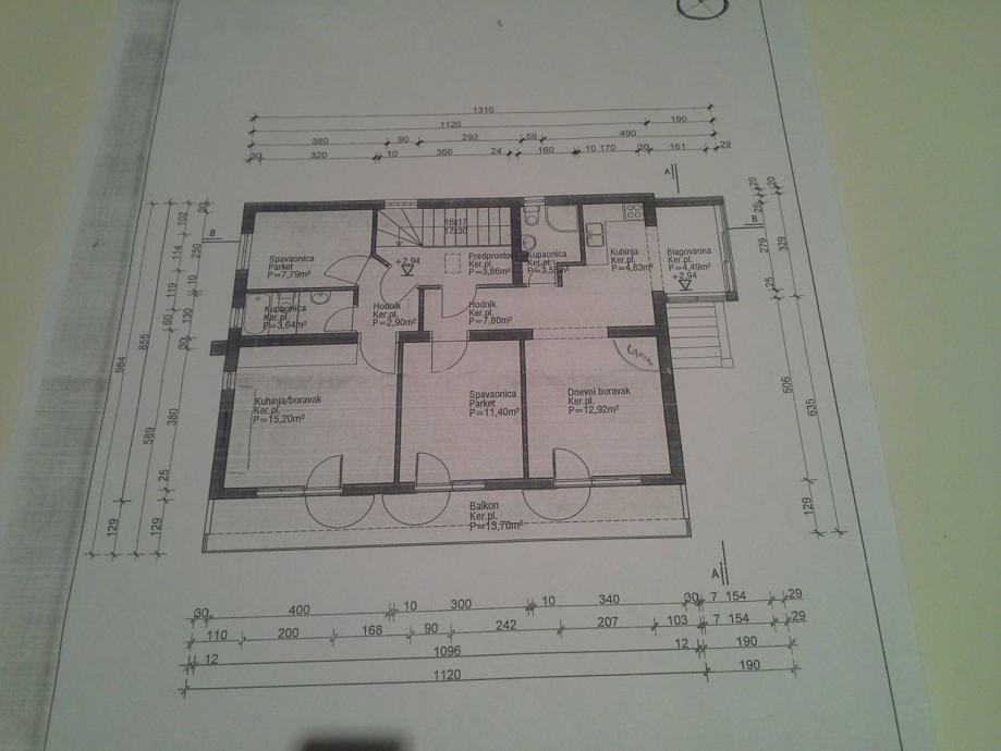 Stubištem se dolazi na gornju etažu koja je podijeljena na dva manja dvosobna apartmana ali sa mogućnošću vraćanja u veliki četverosobni stan .