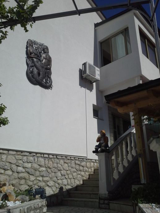 Na ulaznom dijelu se nalkazi natkrivena terasa sa velikim stolom i roštiljem.
