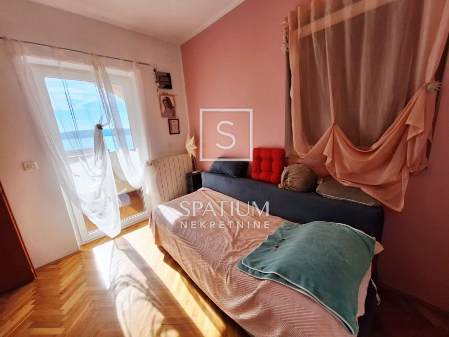 SELCE, u ponudi je izuzetno očuvan i održavan trosoban stan smješten na 1. katu kvalitetne zgrade. Stan se sastoji od velikog dnevnog boravka sa blagovaonicom i kuhinjom te otvorenim pogledom na more, tri spavaće sobe od kojih je jedna sa walk in ormarom, druga sa izlazom na loggiu dok se treća trenutno koristi kao radna soba te kupaonice. Stan je opremljen centralnim grijanjem na struju, kvalitetnom aluminijskom stolarijom, parketima te protuprovalnim vratima. Zgrada je uredna i redovito održavana. Stanu također pripada i parkirno mjesto. Blizina većih turističkih centara čini ga privlačnim i za obitelji i za one koji traže aktivan odmor.