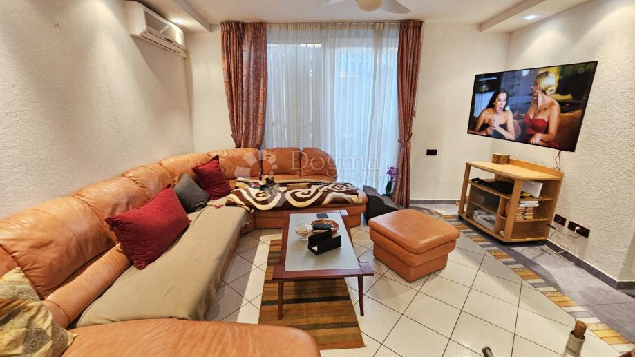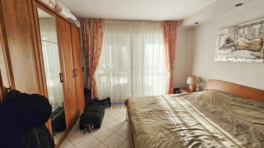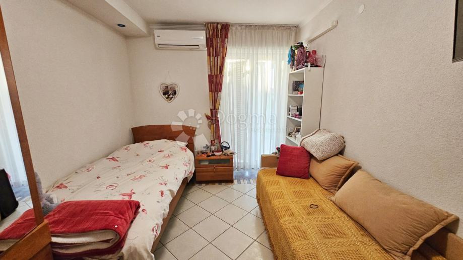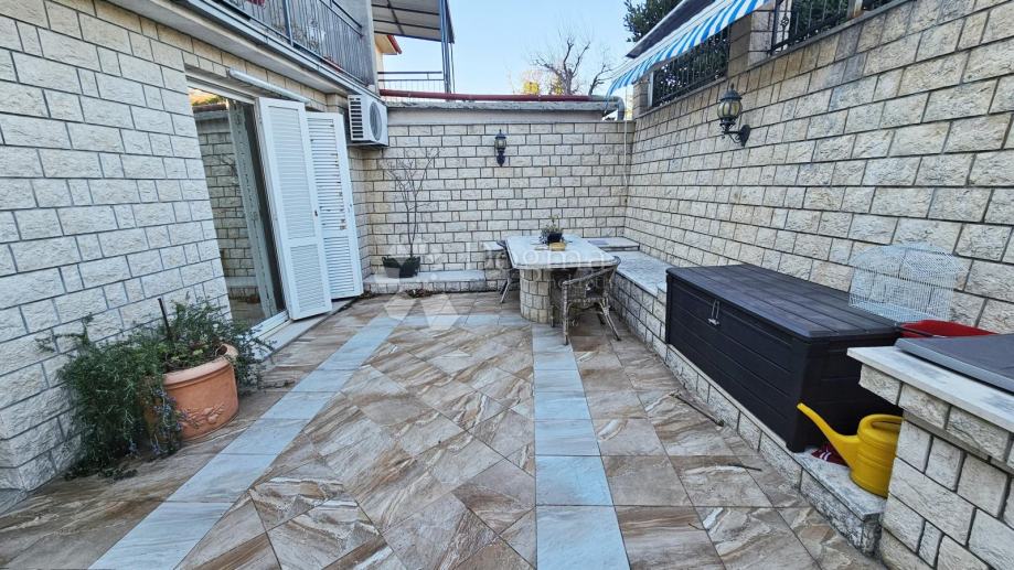 Ispred stana se nalazi **više parkirnih mjesta** koja nisu u vlasništvu, ali su uvijek dostupna. Stan je opremljen **kvalitetnom PVC stolarijom, klima uređajima za grijanje i hlađenje te norveškim radijatorima**, a nedavno je obnovljena i fasada. **Prostrana loggia** pruža pogled na more, koji je djelomično zaklonjen bujnim zelenilom, stvarajući ugodnu atmosferu.