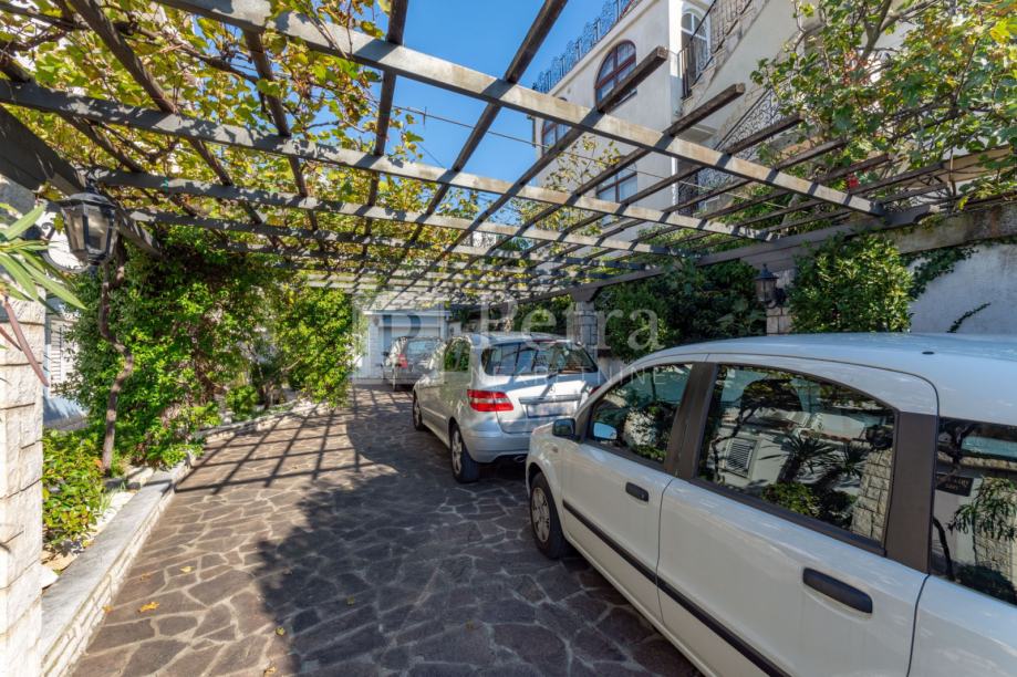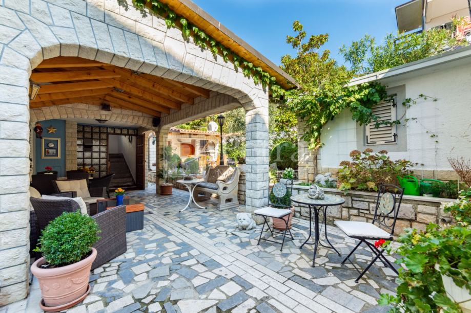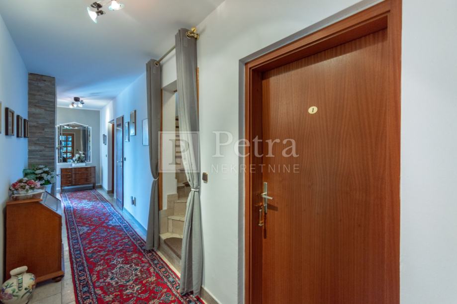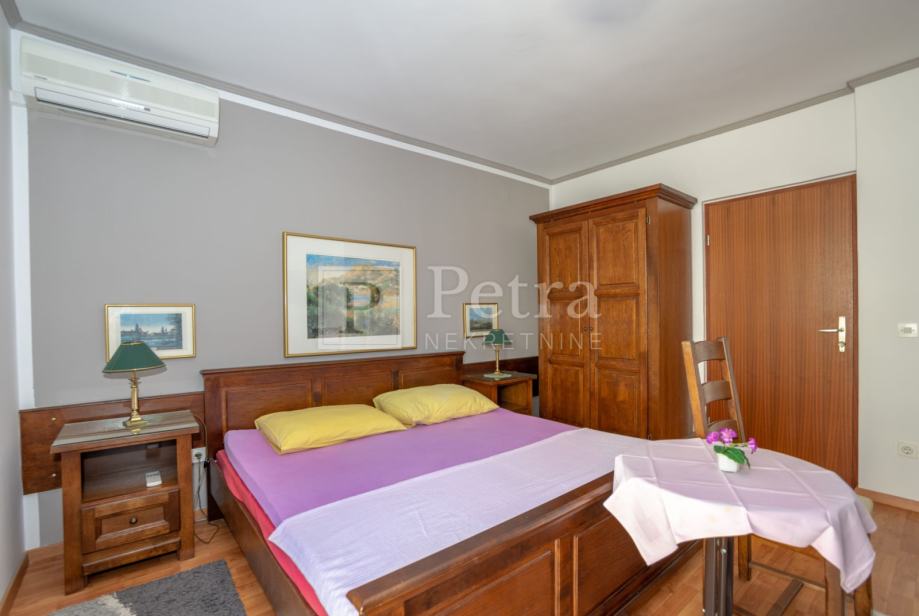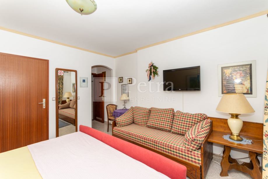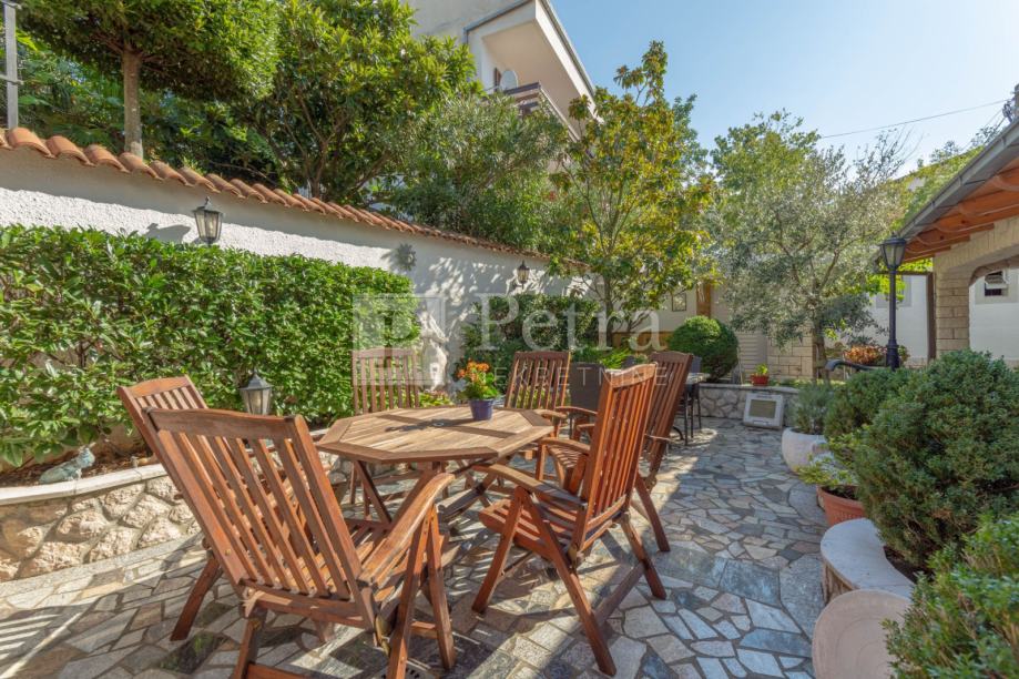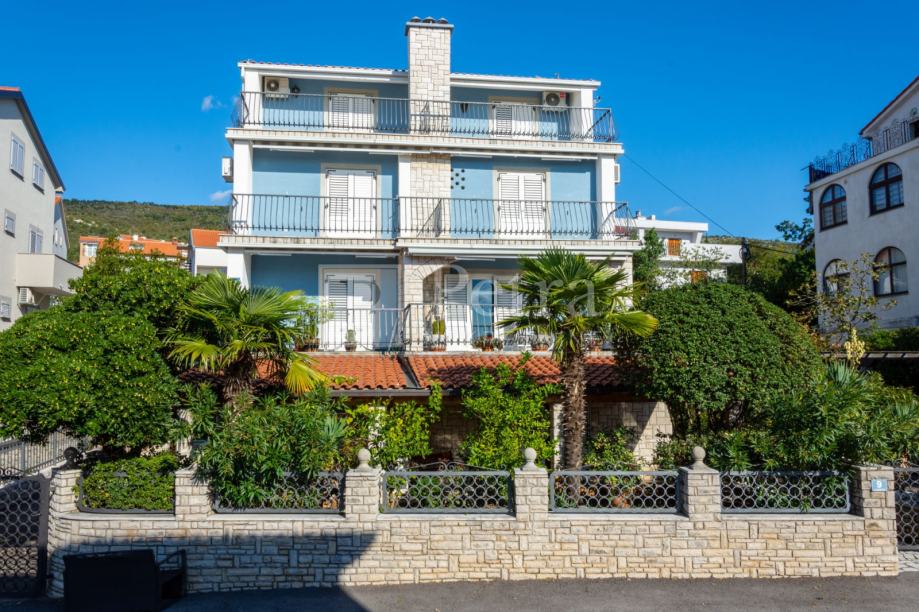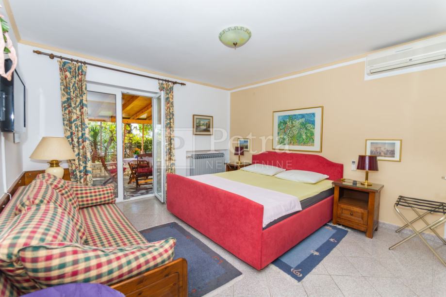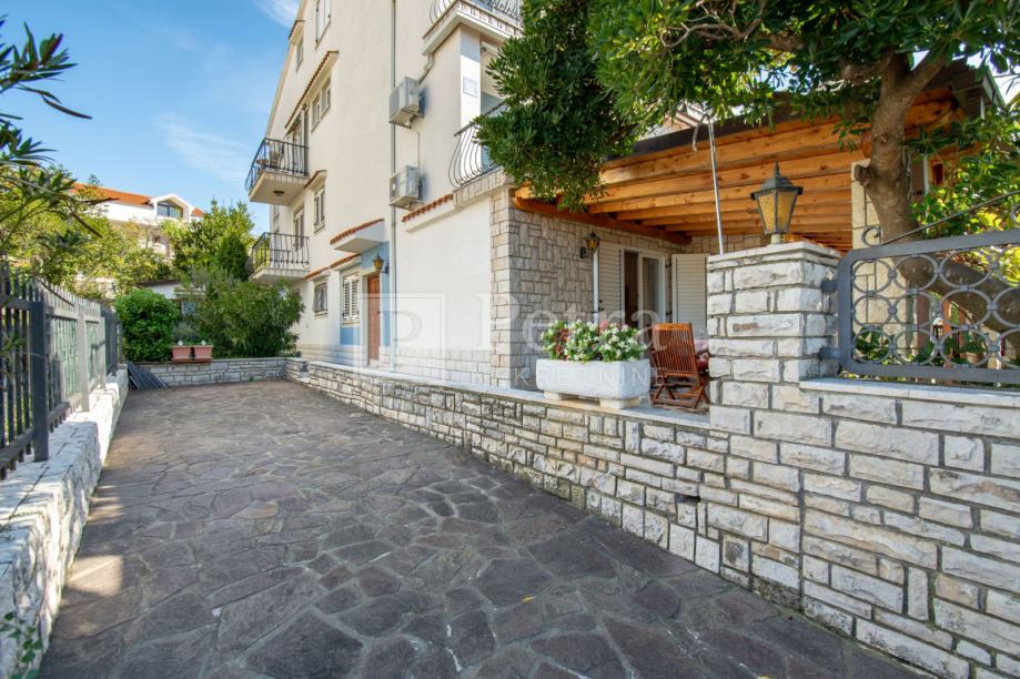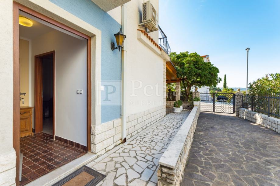 Prekrasna samostojeća vila na četiri etaže. U prizemlju se nalaze dva apartmana s terasom, odvojena kuhinja i blagovaona. U vanjskom dijelu je ljetna kuhinja, garaža za dva automobila, te više parkirnih mjesta. Na prvom katu se nalazi stan koji se sastoji od velikog dnevnog boravka s kuhinjom i blagovaonom, te dvije spavaće sobe s balkonima, kupaona, hodnik i toalet. Na drugom katu nalazi se pet sppavaćih soba s kupaonama i balkonima, te pogledom na more. Na trećem katu nalaze se tri spavaće sobe s kupaonama i balkonima. Prva dva kata imaju centralno grijanaje, dok su na druga dva kata klima uređaji. Splarni paneli na krovu. Udaljenost od mora je 300 m.