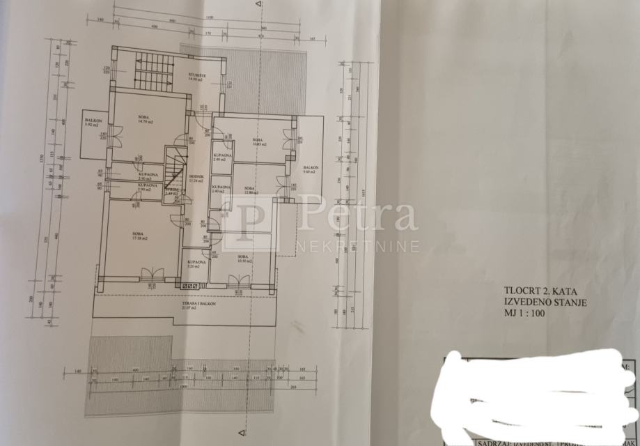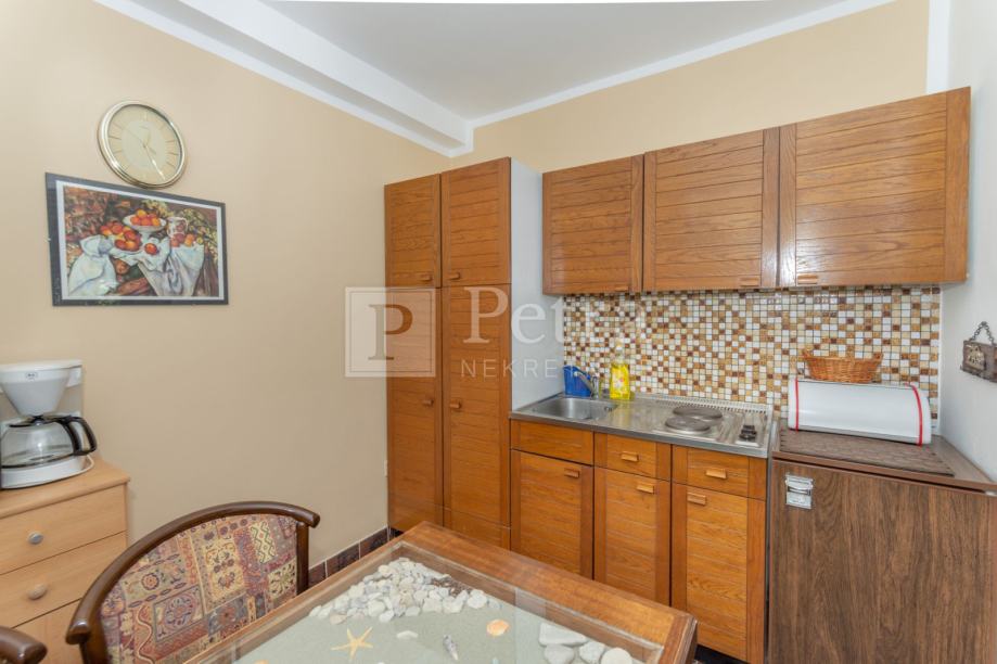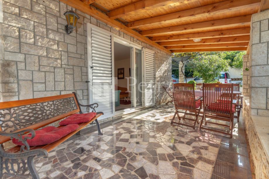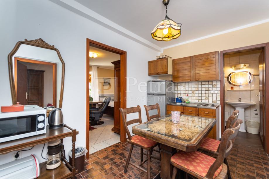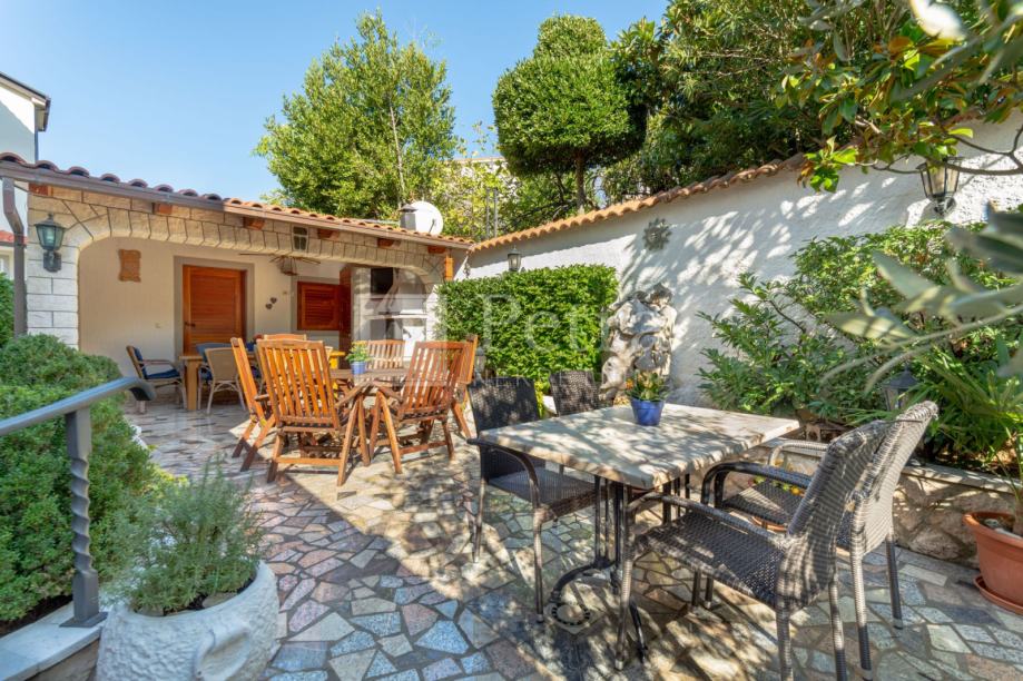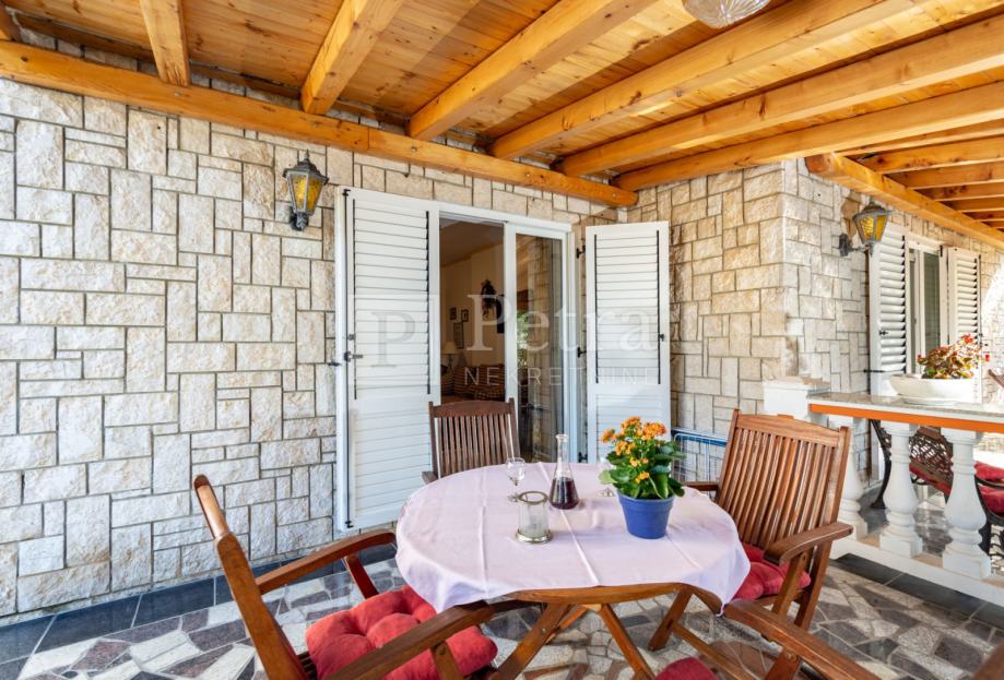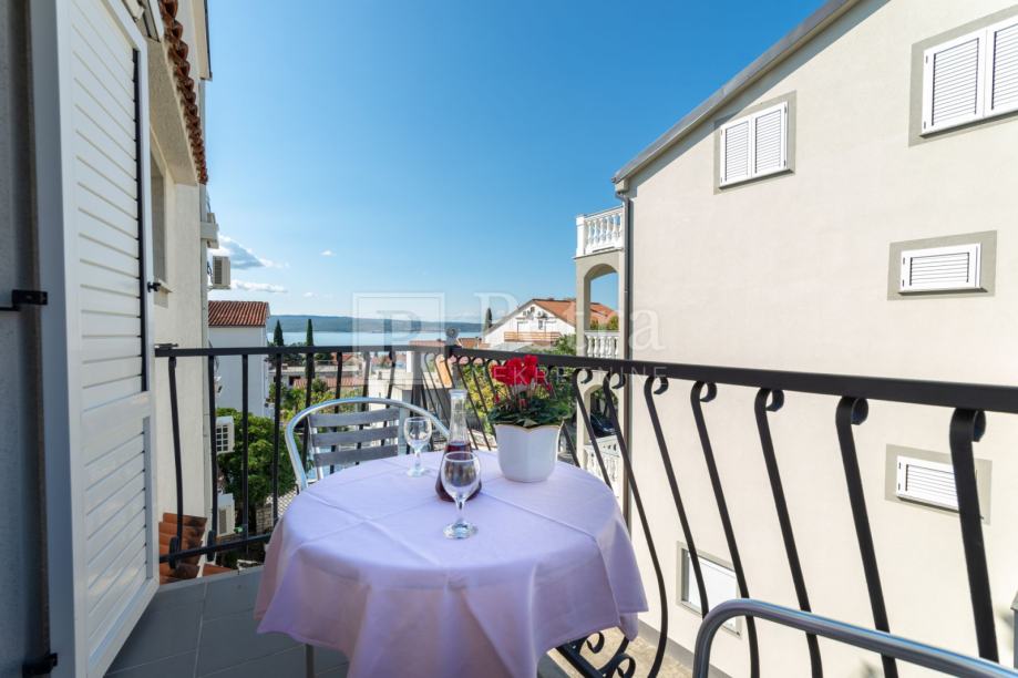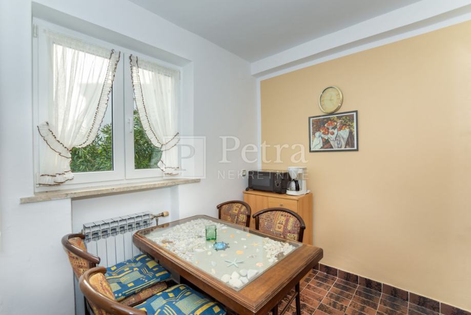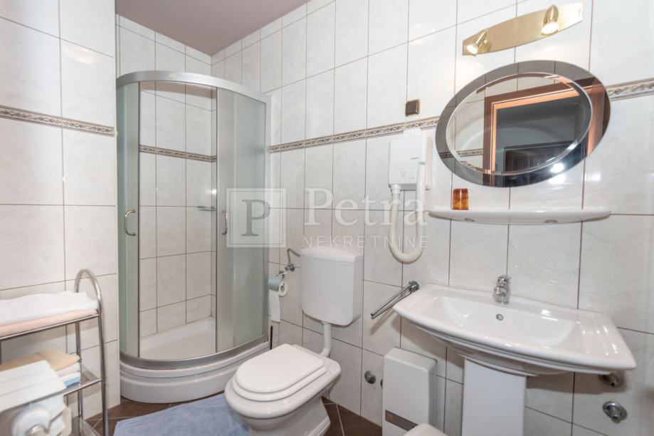 Prekrasna samostojeća vila na četiri etaže. U prizemlju se nalaze dva apartmana s terasom, odvojena kuhinja i blagovaona. U vanjskom dijelu je ljetna kuhinja, garaža za dva automobila, te više parkirnih mjesta. Na prvom katu se nalazi stan koji se sastoji od velikog dnevnog boravka s kuhinjom i blagovaonom, te dvije spavaće sobe s balkonima, kupaona, hodnik i toalet. Na drugom katu nalazi se pet sppavaćih soba s kupaonama i balkonima, te pogledom na more. Na trećem katu nalaze se tri spavaće sobe s kupaonama i balkonima. Prva dva kata imaju centralno grijanaje, dok su na druga dva kata klima uređaji. Splarni paneli na krovu. Udaljenost od mora je 300 m.