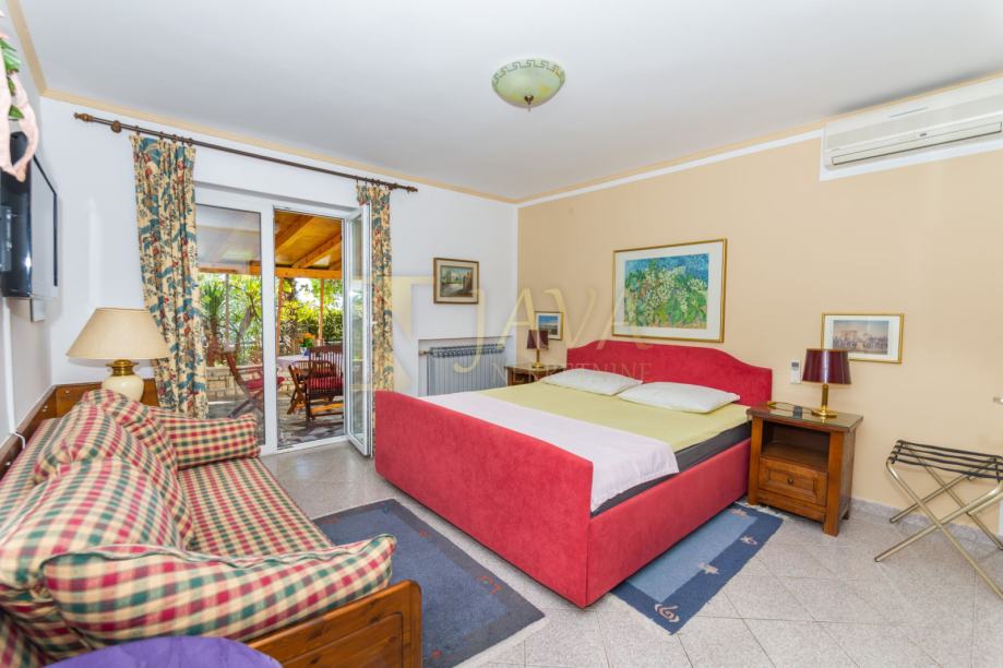 • u prizemlju: 2 apartmana s velikim terasama + kuhinja za pripremu doručka + blagovaona s terasom za cca 20 osoba