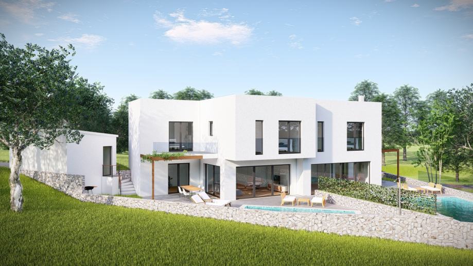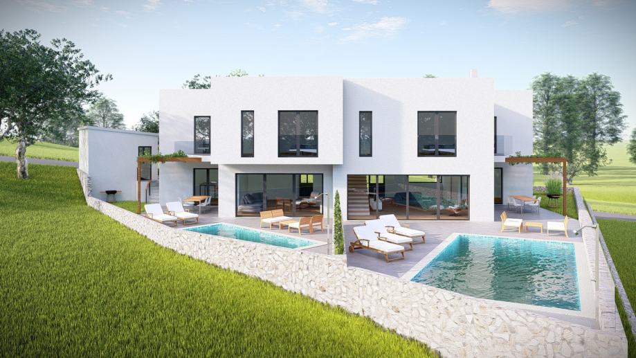 Stambene jedinice su dvokatne ( u prizemlju dnevni boravak, kuhinja, kupaonica, 1 spavaća soba, a na katu 3 spavaće sobe, hodnik, ostava, 3 kupaonice ), svaka ima svoj bazen. Vila će imati još i 3 garaže.