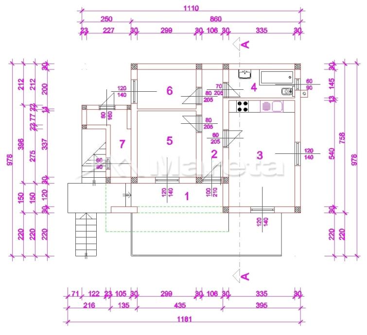 Kuća tlocrtne površine 84 m2 sagrađena je na zemljištu površine od 1164 m2.