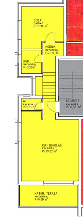 U prodaji je stan u novoizgrađenoj zgradi sa ukupno 6 stanova. Stan se sastoji od: kuhinje s blagovaonicom i dnevnim boravkom, spavaonice, hodnika, kupaonice, wc-a, spremišta i lođe. Stanu također pripada i vrt kao zajednički prostor stana, te jedno parking mjesto ispred zgrade. Stan se nalazi u prizemlju zgrade, te ima otvoren pogled na more.