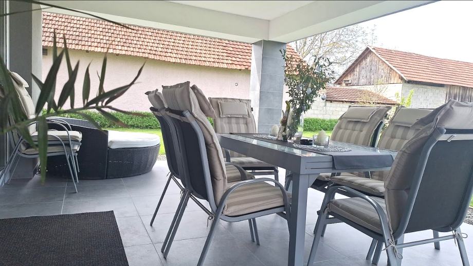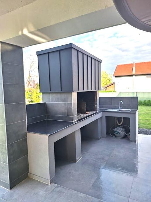 - kuća ima četiri spavaće sobe i dnevni boravak sa izlazom na prostranu natkrivenu terasu sa roštiljem,