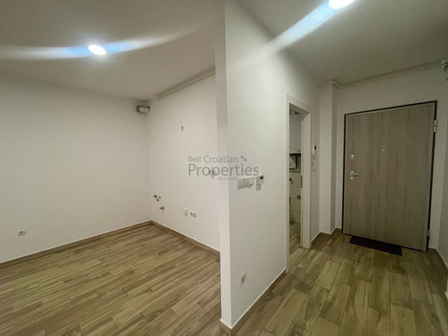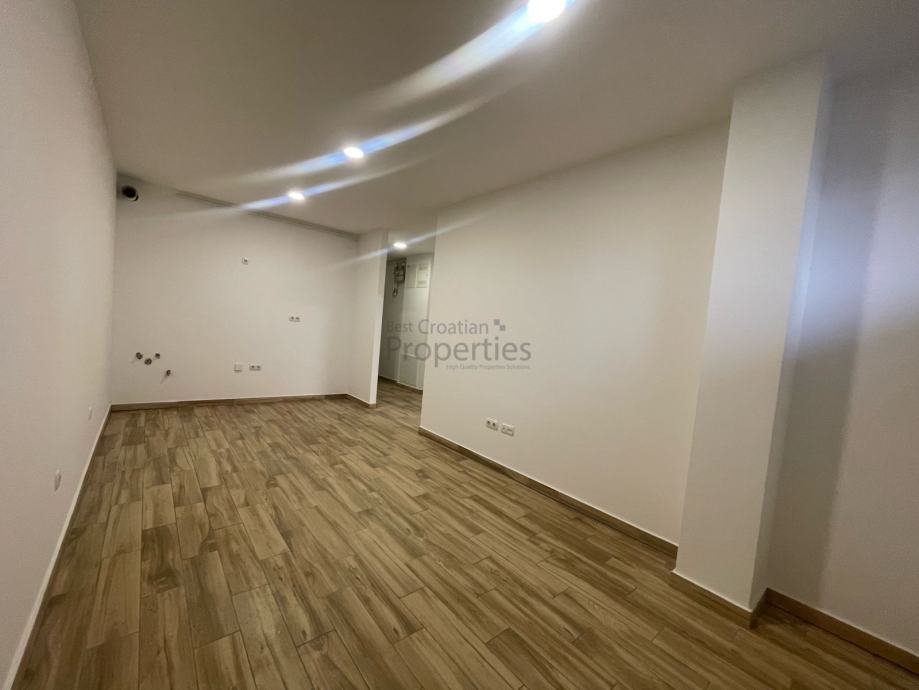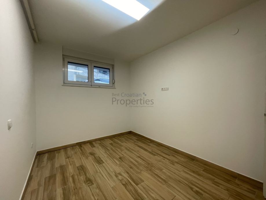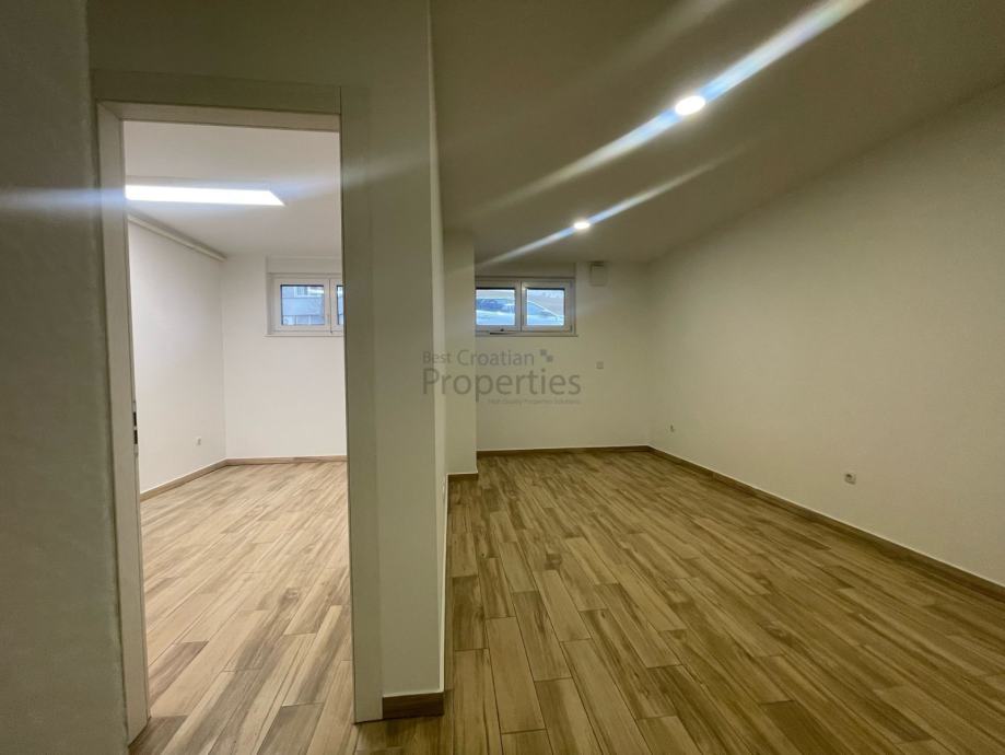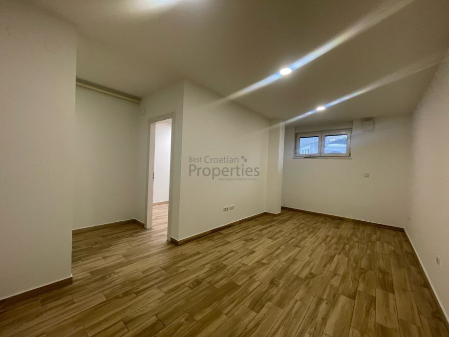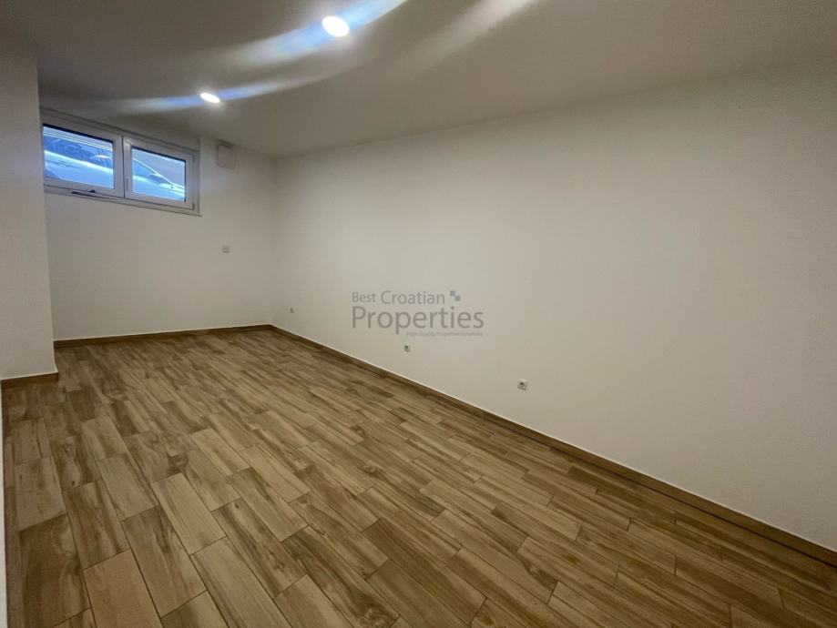 Nalazi se u suterenu nove zgrade izgrađene 2020.-e godine koja ukupno ima četiri kata. Prodaje se nenamješten (namještena jesamo kupaonica)