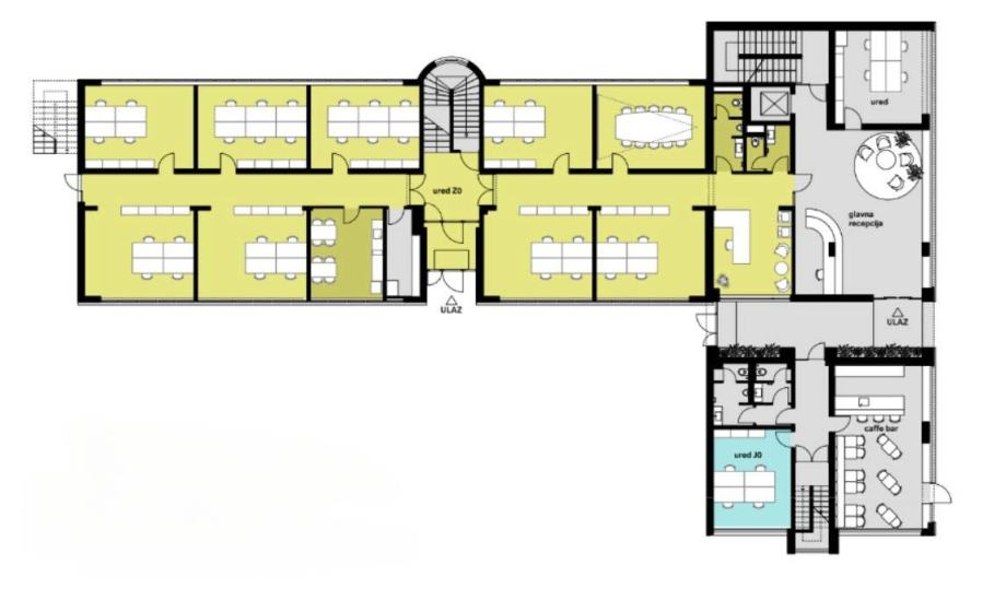 Etaža 0 oznake u tlocrtu ured ZO površine 425 m2