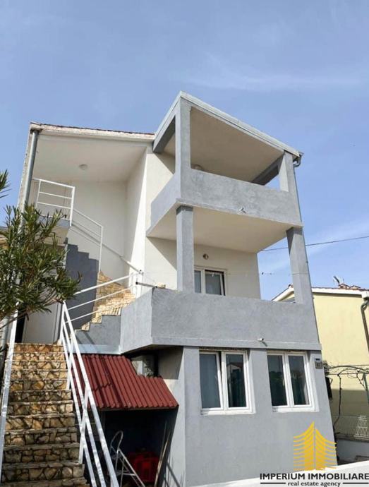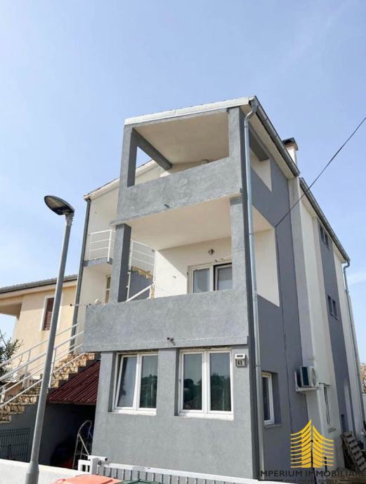 Prodaje se dvojna kuća u mirnom naselju Vrsi, ukupne površine 240 m2. Ova prostrana nekretnina nudi sedam spavaćih soba, pružajući dovoljno prostora za obitelj ili mogućnost prenamjene za druge potrebe.