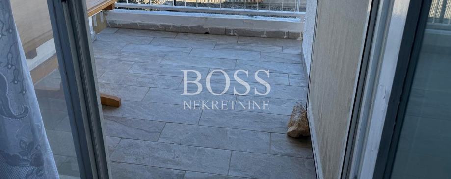Apartman na prvom katu, 1S+DB s balkonom i otvorenim pogledom na more. Kompletno je namješten, te se kao takav i prodaje, a pripada mu i ostava u prizemlju. Udaljenost od mora je 200m, a od centra 400m. Boss, kontakt: 091/377-1010