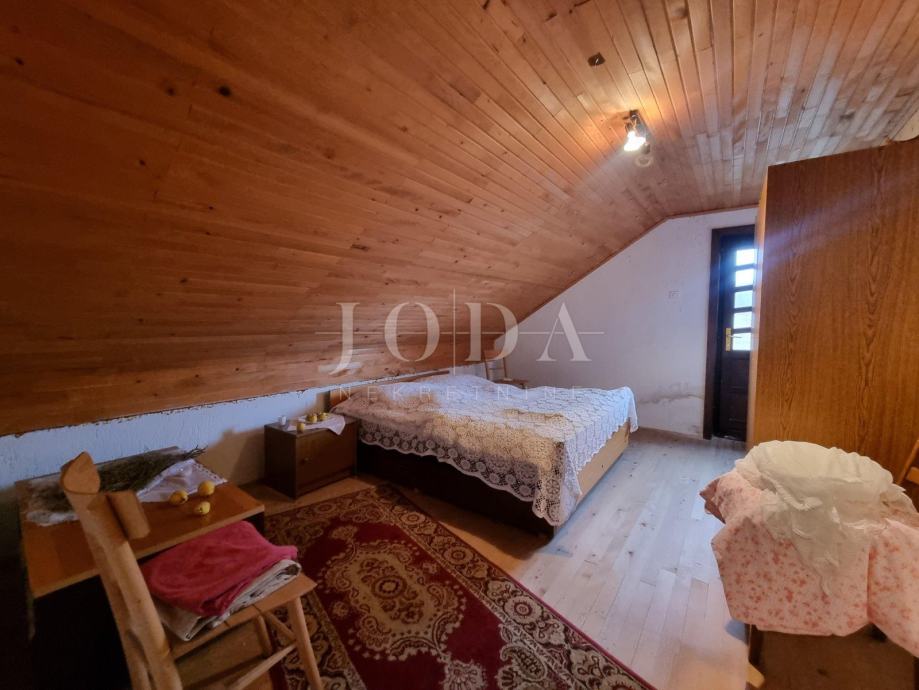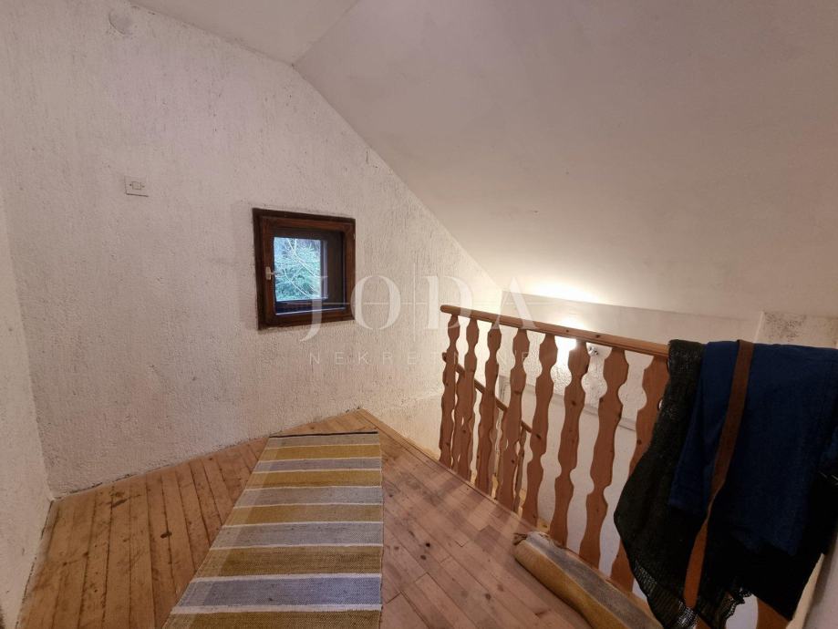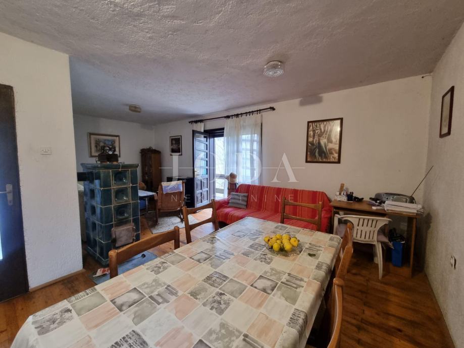 Prodajemo kuću na parceli od 1770m2 u naselju Alan koje je u sastavu grada Senja. Kuća se sastoji od suterena, prizemlja i potkrovlja. U suterenu se nalaze dvije prostorije koje se koriste kao spremišta. Vanjskim stepenicama ide se na kat gdje se nalazi kuhinja sa blagovaonom, dnevni boravak, hodnik, kupaona i balkon. Unutarnjim stepenicama ide se u potkrovlje gdje se nalaze tri spavaće sobe. Kuća ima potencijala, a zbog svoje prostrane okućnice ima mogućnost gradnje dodatnih sadržaja. Nekretnina je udaljena 14km do Klenovice i 16km do grada Senja.