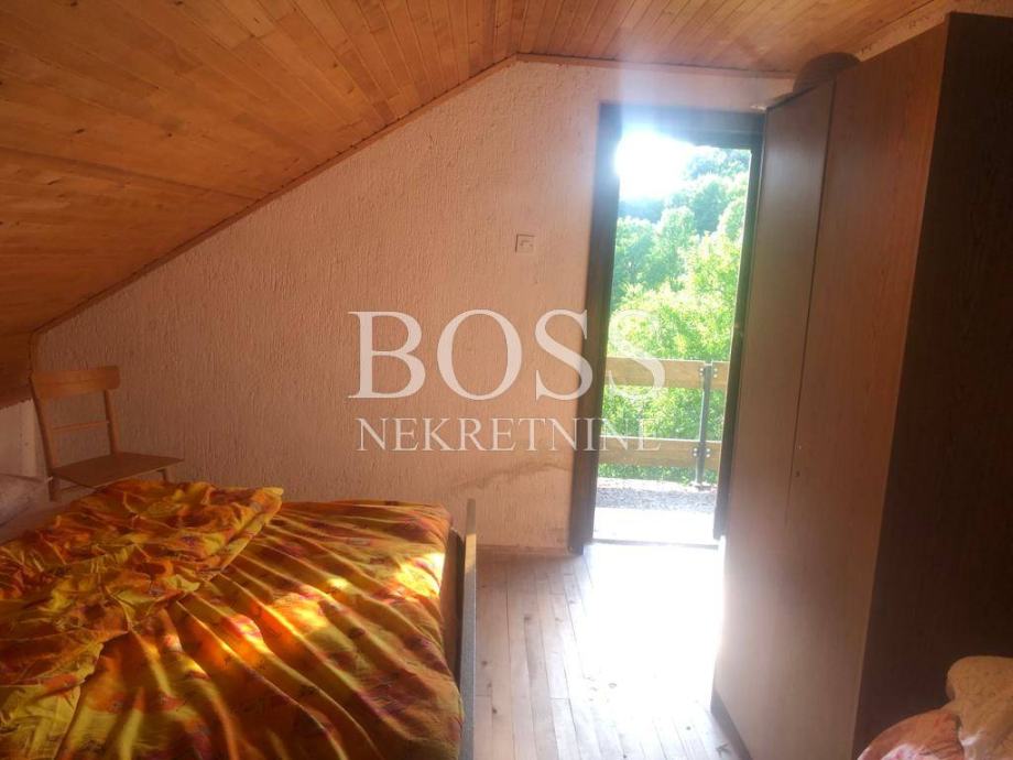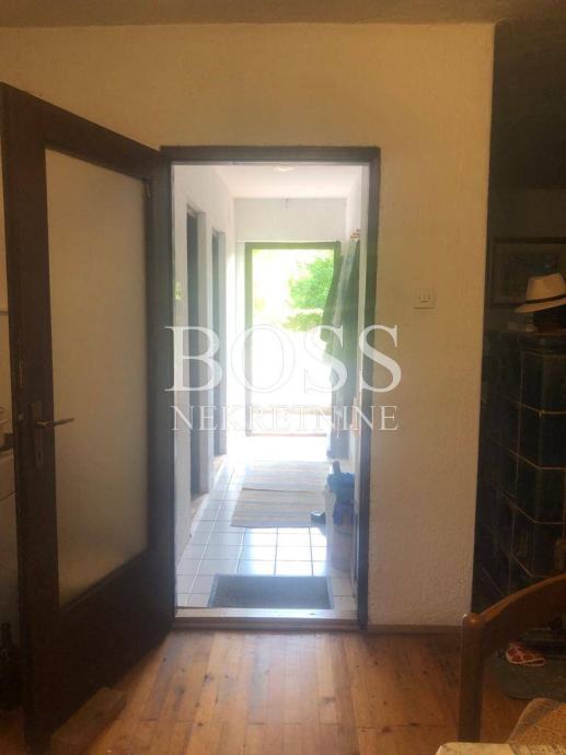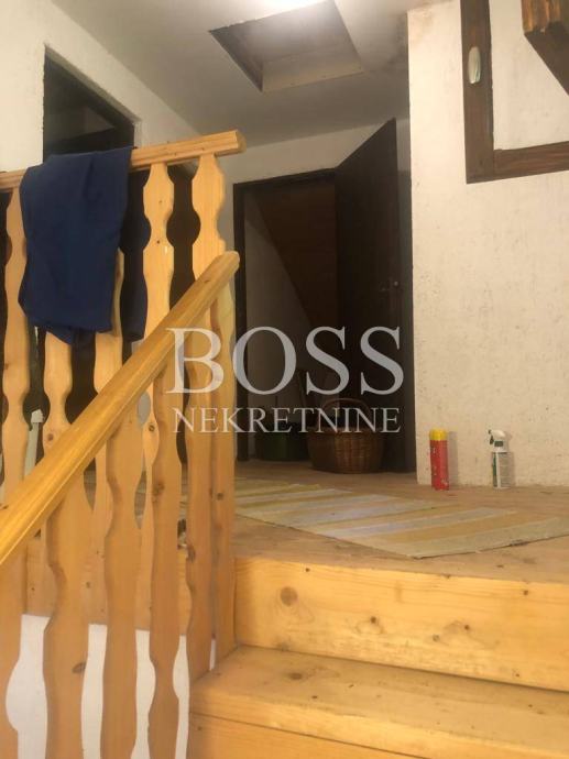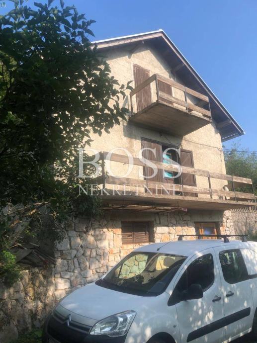 Samostojeća kuća na mirnoj lokaciji okružena zelenilom, 13km iznad grada Senja i mora. Suteren ima garažu i konobu, na katu su kuhinja, dnevni boravak, kupaona, unutarnje stepenište za visoko potkrovlje gdje su dvije sobe. Velika okućnica koja je građevinska, šterna 40m2. Idealno za turizam i odmor. Boss, kontakt: 091/377-1010