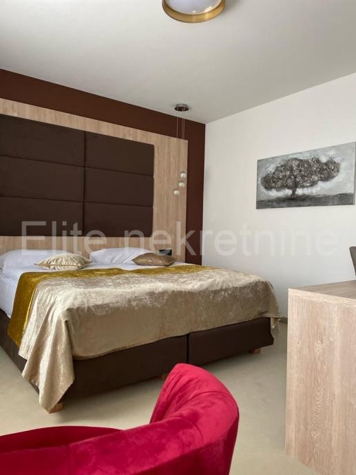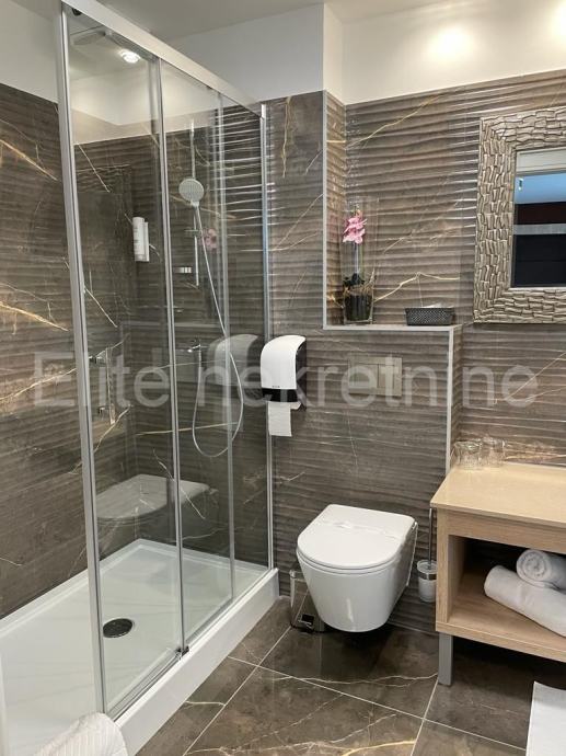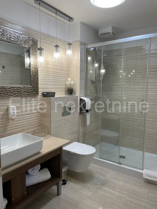 Svaka soba ima svoju kupaonicu i kuhinju te solarno grijanje vode.Disco bar se nalazi u suterenu predmetne poslovne zgrade i on se može kupiti odvojeno te je u naravi ugostiteljski objekt ukupne korisne površine 181,54 m2, te vanjska terasa 150 m2.