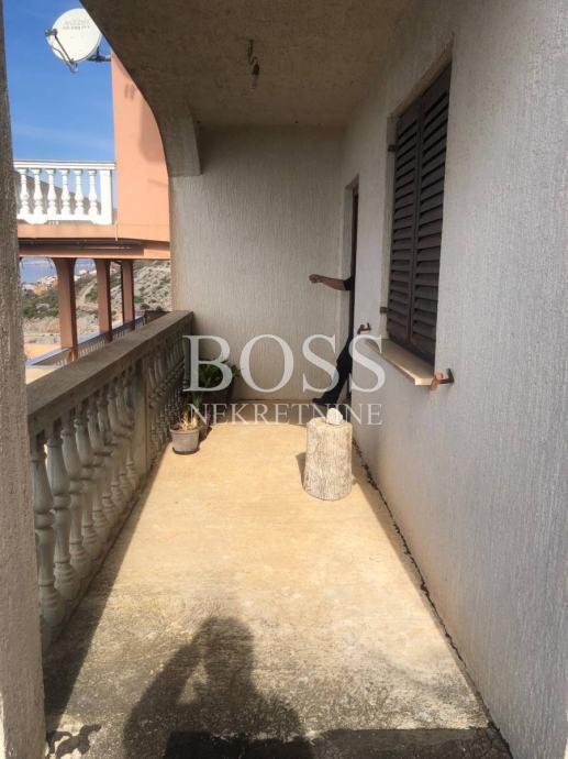 Senj, dvojna kuća P+2. Prizemlje je neuređeno, kupljen je materija za pregraditi prostor i parketi. Prvi kat je nedovršen, ugrađena je stolarija, provedene instalacije i napravljene pregrade, u naravi 1S+DB s garažom iz koje se izlazi na unutarnje stepenište za kat gdje se nalazi kompletno uređen i namješten 2S+DB. Etažno centralno grijanje na struju i klima uređaji. Otvoren pogled na more i grad. Udaljenost od mora je 150, a od grada 1,5km. Boss, kontakt: 091/377-1010