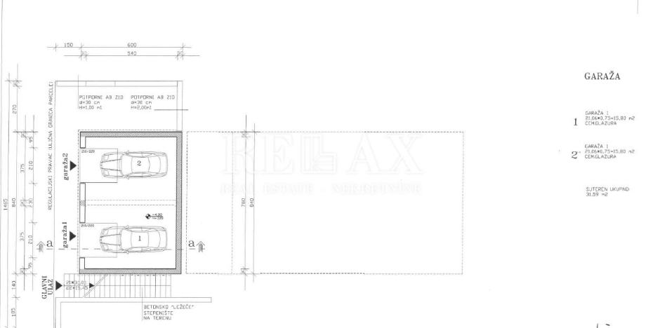 Teren je već poravnan i pripremljen za gradnju, što značajno olakšava početak radova. Na zemljištu je moguće izgraditi građevinu s dvije etaže – prizemljem i katom, uz dodatnu mogućnost izgradnje garaže u podzidu do ulice. Instalacije struje i vode nalaze se u neposrednoj blizini, što dodatno pojednostavljuje proces gradnje.