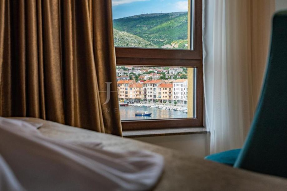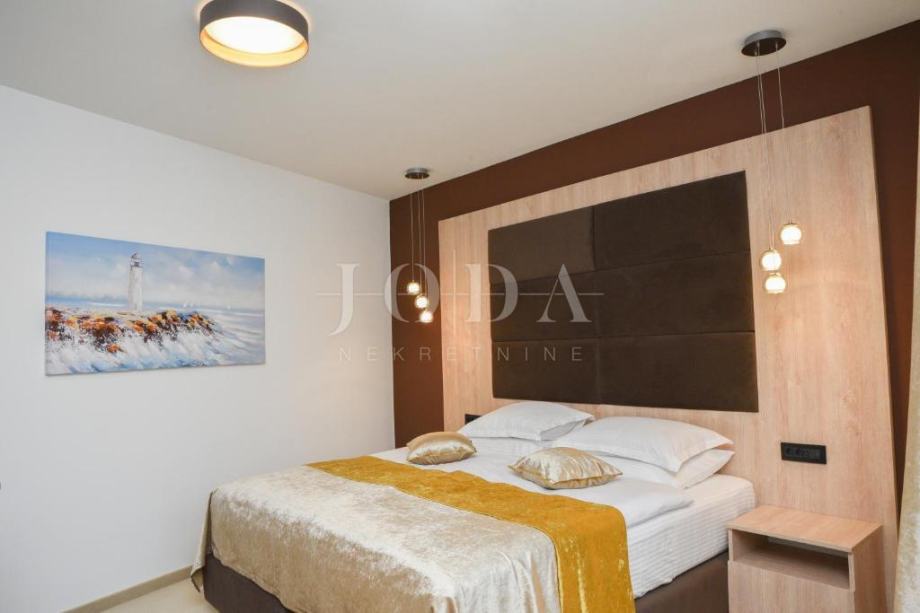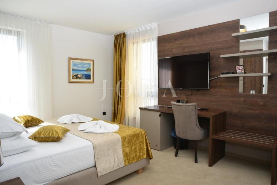 U prizemlju hotela se nalazi restoran sa terasom, kuhinja, toalet za osoblje, spremište, lift, skladište, recepcija, toalet za goste, toalet za invalide, prostorija za presvlačenje beba i prostorija za čuvanje prtljage. Na gornjim etažama nalazi se 15 soba sa kupaonicama, spremište, vešeraj, ured i terasa. Hotel je u potpunosti klimatiziran, opremljen podnim grijanjem te ima solarno grijanje tople vode. Kupaonice su opremljene kvalitetnim sanitraijama i pločicama talijanoskog proizvođača Marazzi. Namještaj u restoranu te ormarići u kupaonicama napravljeni su po mjeri. Hotel iama parking te pristup za invalide. Nekretnina za investiciju. Mogućnost kupnje disca u suterenu za 400 000€.