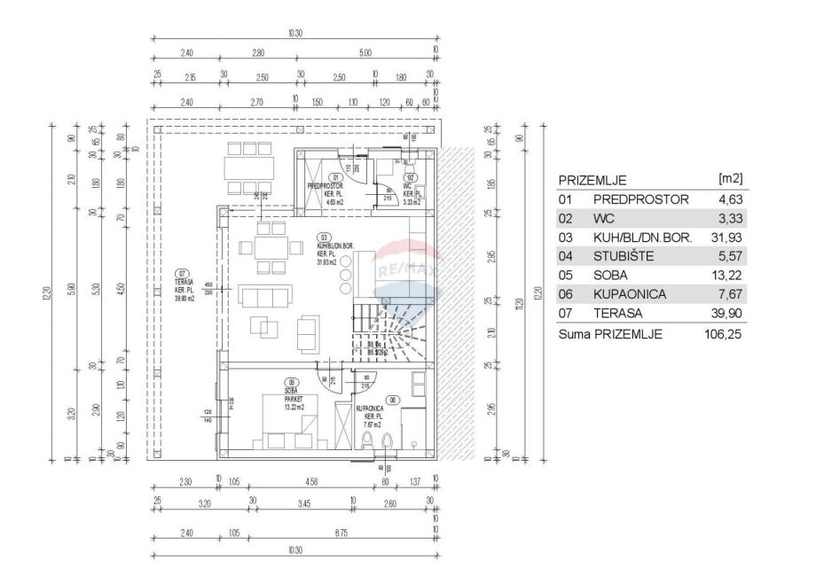 Po projektu, u prizemlju kuće će se nalaziti ulazni prostor, wc, kuhinja s bagovaonicom, soba s pripadajućom