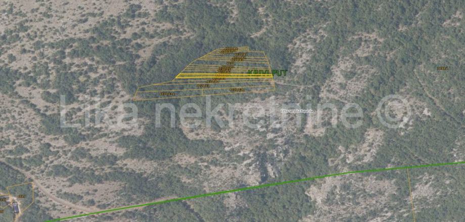 SENJ, Krivi Put (predio Seline) - poljoprivredno zemljište, pašnjak površine 647 m2. Prilaz zemljištu je planinarskom stazom. Od centra Senja udaljeno otprilike 15 km. Pogodno za lovce ili robinzonski turizam... Vlasništvo 1/1, bez tereta.