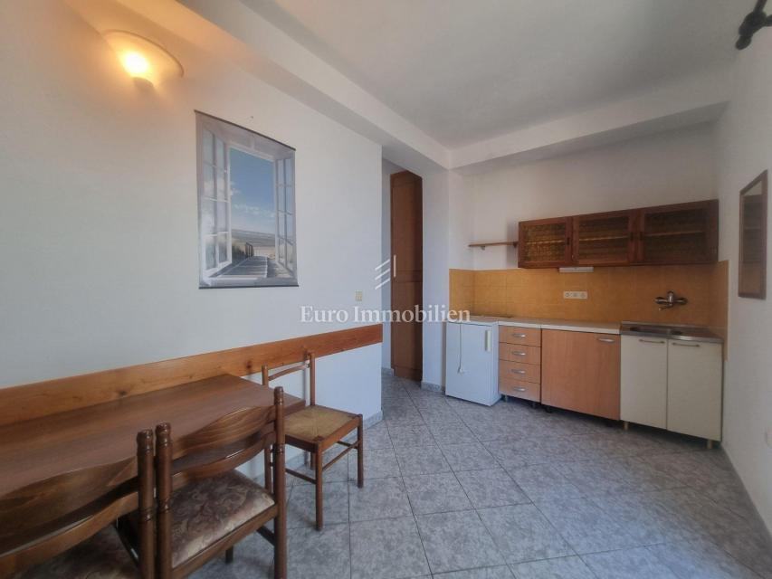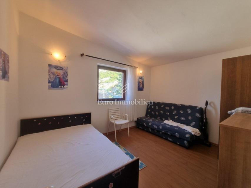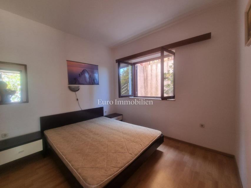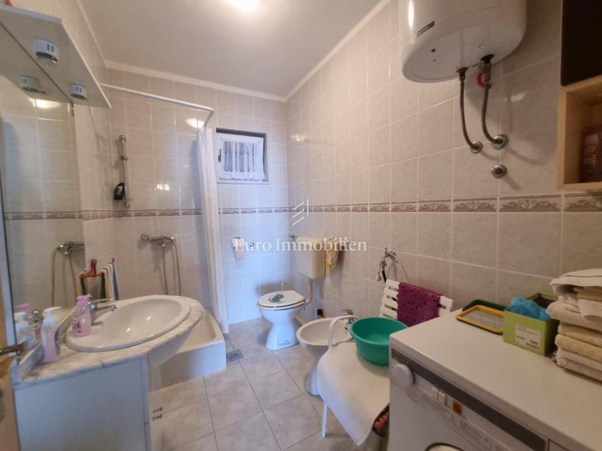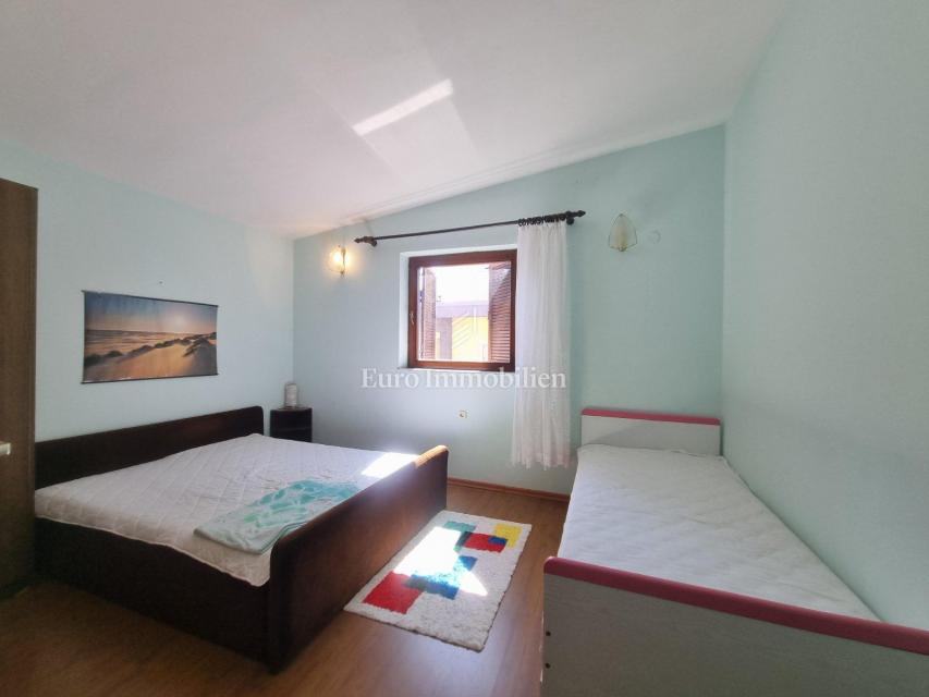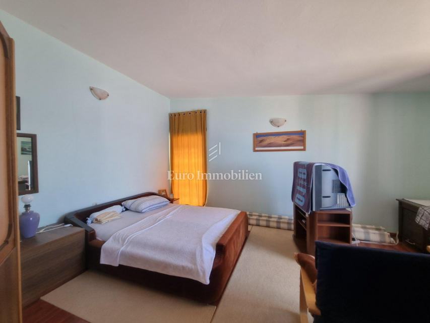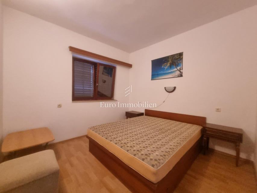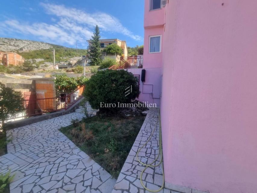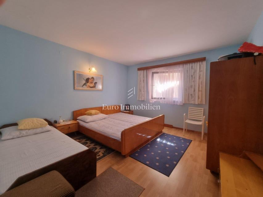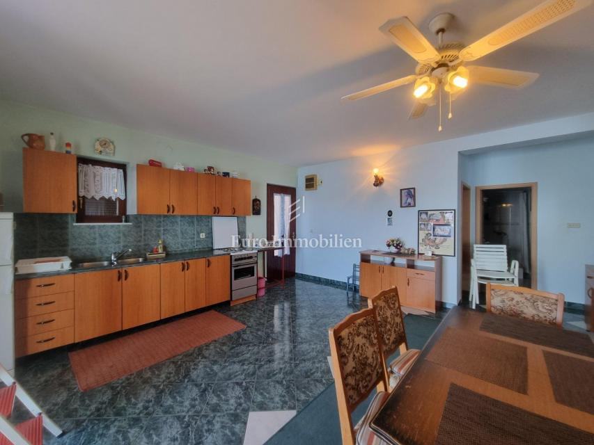 Prodaje se samostojeća kuća s četiri stambne jedinice. U prizemlju kuće nalaze se dva jednosobna apartmana sa pripadajućim terasama i spremištem cijelom dužinom stražnjeg dijela kuće. Na prvom katu nalazi se ljetna kuhinja i stan koji se sastoji od ulaznog hodnika, dvije spavaće sobe, kuhinje sa blagovaonom, dnevog boravka, kupaone i prostrane natkrivene terase sa koje se pruža prekrasan pogled na more. Na drugom katu je identičan stan osim što ima još jednu kupaonu. Okućnica je uređena i održavana i osigurava parking za više automobila. Nekretnina za boravk preko cijele godine, ali i za turistički najam.