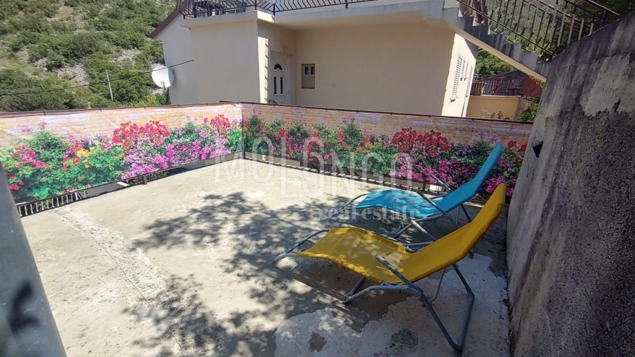 U malom pitoresknom mjestu blizu Senja prodaje se etaža kuće neto površine 80 m2 koja se sastoji od dvije spavaće sobe, kupaone, hodnika te dnevnog boravka s kuhinjom te prostrane terase. Stanu pripadaju i sporedni dijelovi kuće kao i garaža u suterenu. Zračna udaljenost od mora je 150 m.