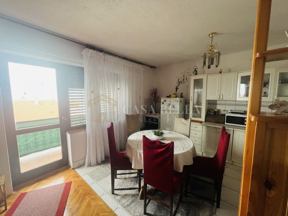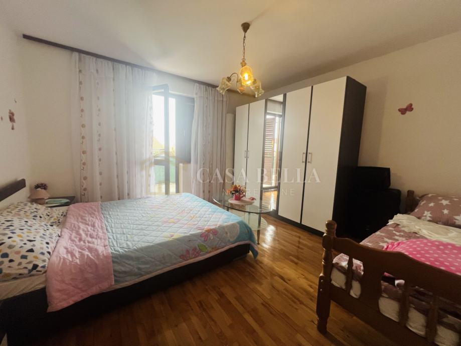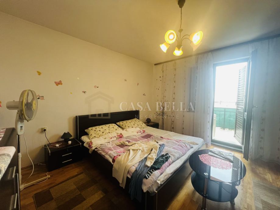 Kat uključuje dvije spavaće sobe, hodnik, dnevni boravak s kuhinjom i blagovaonicom, smočnicu te balkon s pogledom na more.