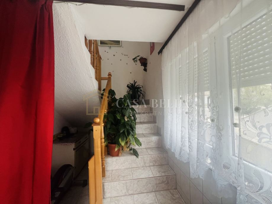 Kuća ima i podrum od cca 18 m², idealan za spremanje ili dodatne potrebe. Prostrano dvorište nudi dovoljno prostora za vrt i parkirna mjesta.