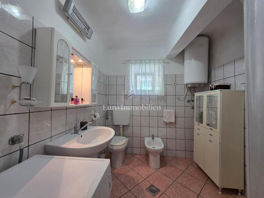 Stan se sastoji od ulaznog hodnika, kuhinje, blagovaonice, dva dnevna boravka, tri spavaće sobe i kupaonice. Prostor je funkcionalnog rasporeda te pruža brojne mogućnosti prilagodbe prema željama i potrebama novih vlasnika. Posebna prednost je povezanost s potkrovljem površine 80 m², koje se može preurediti u dodatni stambeni prostor, čime se značajno povećava korisna površina i vrijednost nekretnine. Na objektu je promijenjena vanjska stolarija te je postavljen novi krov. Grijanje je na pelete.