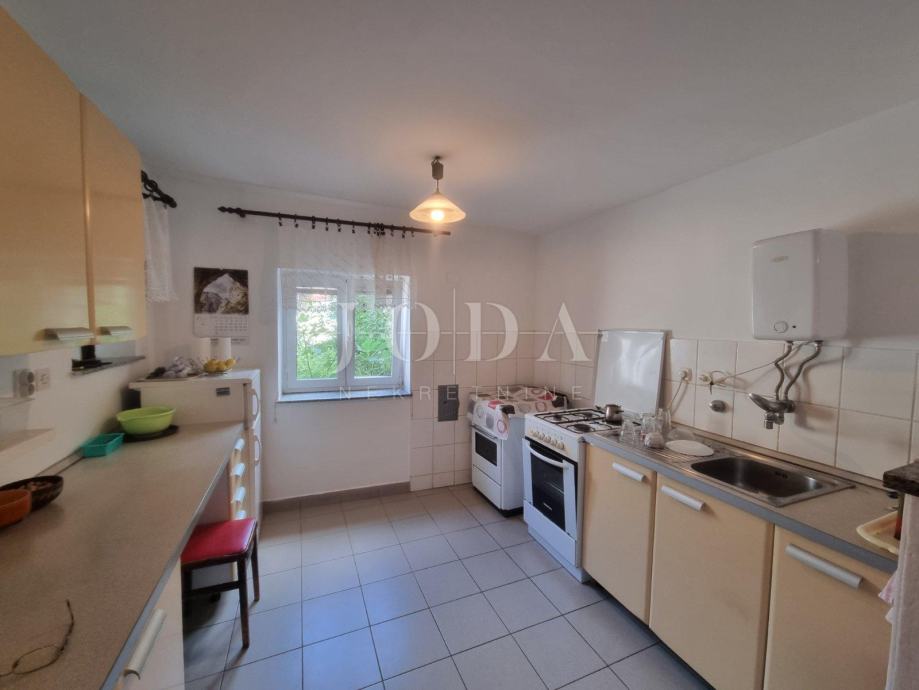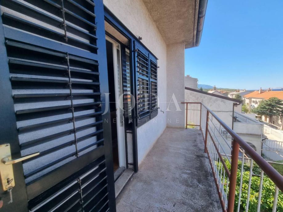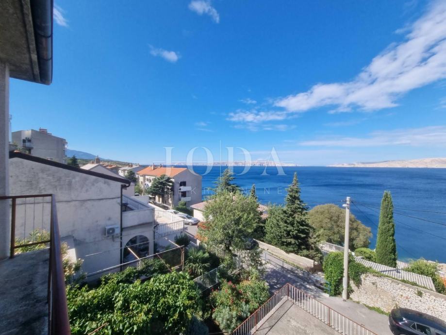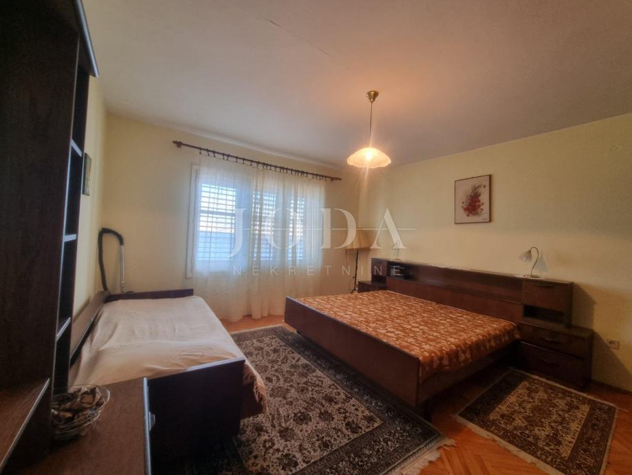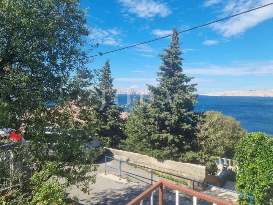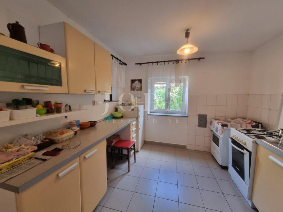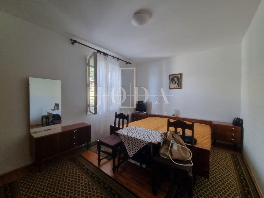 Prodajemo stan na prvom katu kuće na samo 75m od mora. Stan se sastoji od tri spavaće sobe, dnevnog boravka, kuhinje, blagovaone, hodnika, kupaoaone i balkona sa kojeg se pruža prekrasan pogled na more.Tavanski prostor ima ulaz direktno iz stana i može se koristiti kao dodatno spremište. U prizemlju kuće se nalazi terasa od 30m2, garaža i dva spremišta. Kaskadna okućnica zasađena je mediteranskim biljem, uređena i održavana. Nekretnina se nalazi na odličnoj lokaciji nedaleko od svih potrebnih sadržaja te ima veliki potencijal za uređenje prema osobnim potrebama i željama.