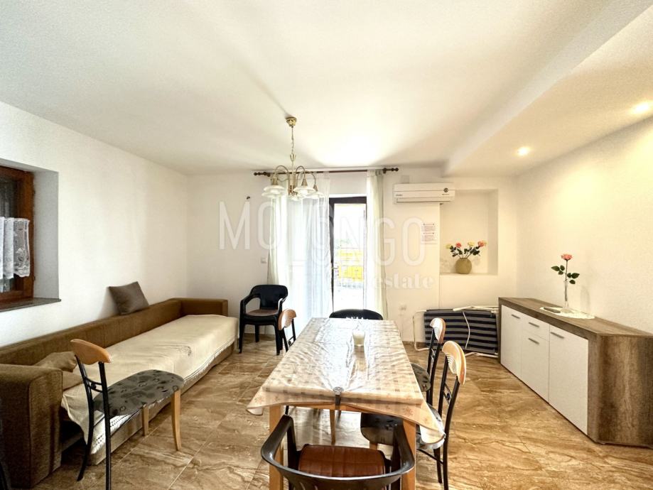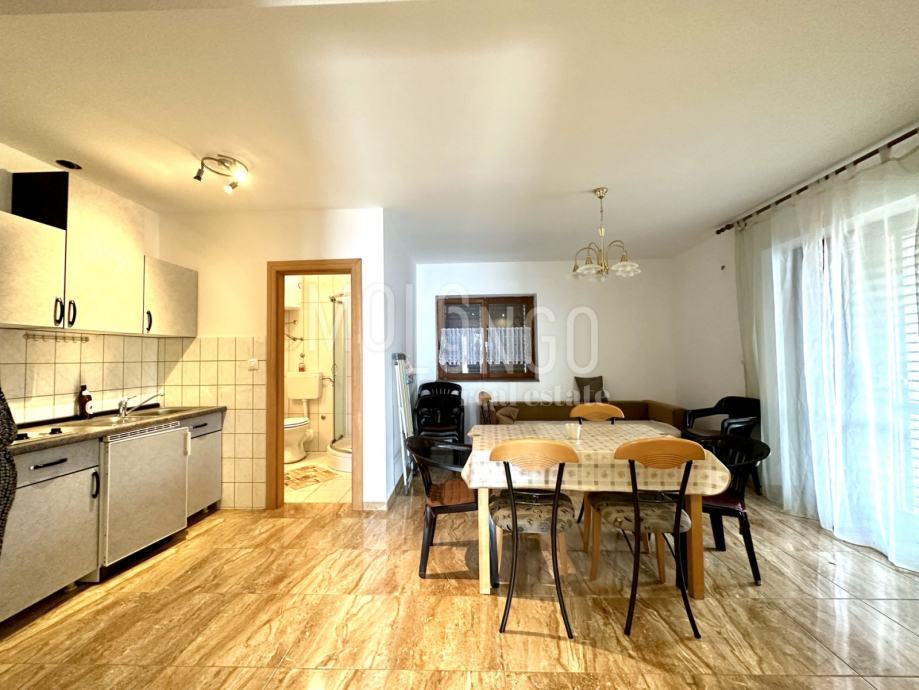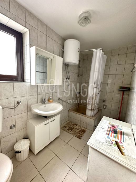 Prizemlje kuće nudi dva odvojena apartmana, svaki sa svojom kuhinjom, kupaonicom i prostorom za spavanje. Osim toga, velika terasa pruža idealno mjesto za opuštanje na otvorenom uz predivan pogled na more. Garaža na prizemlju osigurava prikladno mjesto za parkiranje vozila ili dodatni prostor za spremanje.