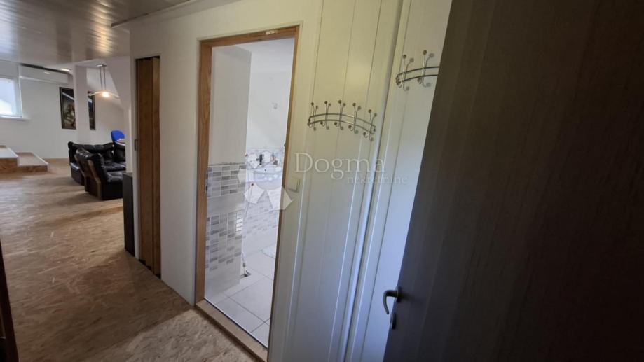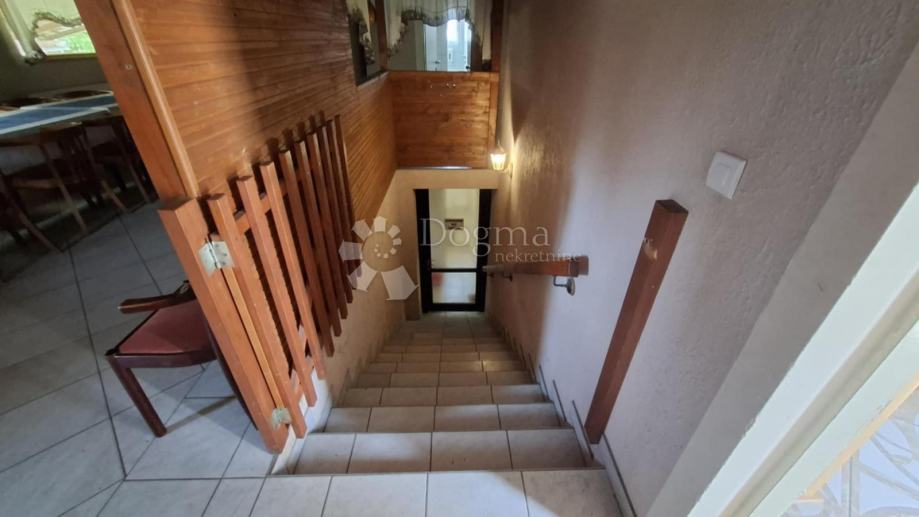 Zgrada površine 270 m² raspoređena je na tri etaže, a svaki njezin kutak odiše namjenom, svrhom i jasnoćom vizije. U podrumskom dijelu smještena je prava gastronomska pozornica: profesionalno opremljena kuhinja,kupaona, konoba s velikim rustikalnim stolom, sav inventar ostaje – od pečenjare na motor, konvektomata preko rashladnih vitrina, perilica, štednjaka, do friteza i ledenica – sve spremno za nove fešte i nova druženja. Nije to podrum, to je srce kuće koje miriše na domaću kuhinju i zvuči kao vesela pjesma u kasne sate.