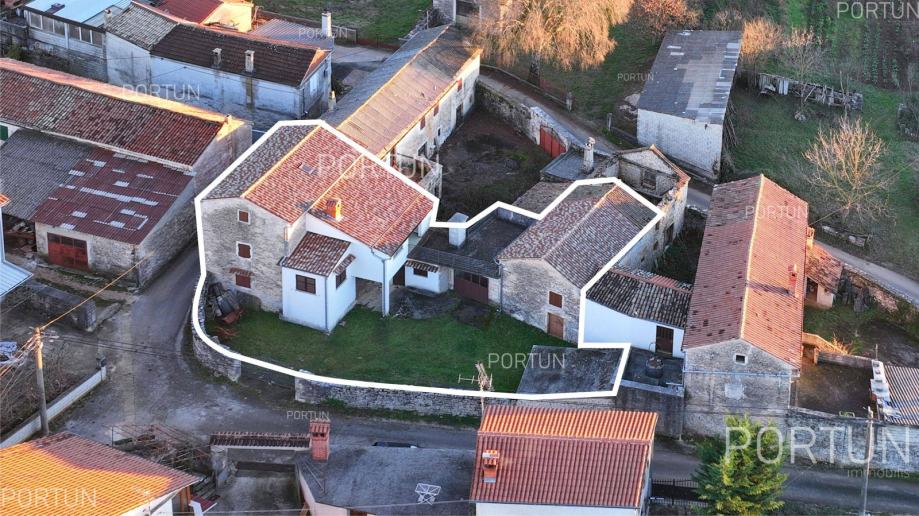 Stoljetno imanje okruženo starim kamenim kućama i uskim seoskim uličicama se nalazi u središnjoj Istri, nedaleko Žminja, srednjovjekovnog gradića poznatog po trgovini i obrtništvu i bogatoj turističkoj ponudi. Mirna, slikovita sela u okolici Žminja nude mir, zelenilo i tišinu što privlači sve više gostiju željnih odmora u autentičnom ambijentu. Ovo stoljetno imanje nudi upravo to, mogućnost da ovim starim kućama udahnete novi život i spasite ih od zaborava. U sklopu imanja nalazimo nekoliko kamenih građevina, od kojih se najviše ističe stambena kuća sa tri etaže i površinom od 227 m2. U prizemlju kuće se nalaze vinski podrum i dvije konobe, a na gornjim katovima se nalazi stan s dvije spavaće sobe. Nešto manja je pomoćna građevina, koja u dvije etaže ima cca. 56 m2, a služi kao garaža i spremište za usjeve. Imanje se prostire na ograđenom zemljištu površine 354 m2, a uz to postoji mogućnost dokupa raznih građevinskih i poljoprivrednih zemljišta u neposrednoj blizini. Život ili odmor u obnovljenoj kamenoj kući neponovljivo je iskustvo koje nas povezuje sa poviješću i tradicijom, a to je upravo ono što traže zahtjevni gosti iz urbanih sredina. Ovo imanje osim povijesnog konteksta nudi i mir seoskog života te odličnu povezanost s obližnjim Rovinjem ili Pulom, u kojima se nude brojni sadržaji i atrakcije. Spomenimo i da je ova lokacija izvrsna za izlete u prirodu bilo pješke ili biciklom po puteljcima koji vode kroz šume i polja. KLJUČNE OSOBINE✔ Stoljetno imanje sa mnogo karaktera✔ Pitomo selo okruženo zelenilom✔ Pazin 15 km - Rovinj 26 km ✔ Autentičan seoski ambijent✔ Glavna kuća | 2 Spavaće sobe - 1 Kupaonica - 3 Etaže - 227,62 m2✔ Pomoćna građevina | 2 Etaže - cca. 56,00 m2