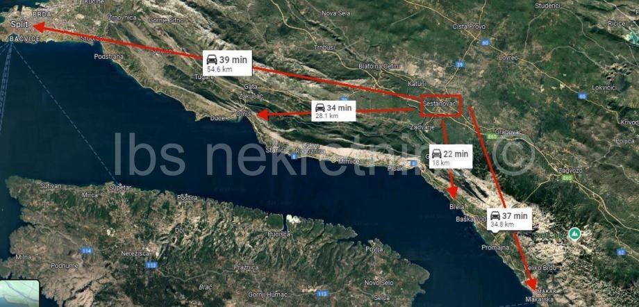 U mirnom okruženju Šestanovca, svega 15 minuta vožnje od kristalno čistih plaža Makarske rivijere, smjestila se atraktivna građevinska parcela površine 5500 m². Parcela se nalazi uz asfaltiranu prometnicu, s vodom i strujom dostupnima u neposrednoj blizini, što znatno olakšava početak gradnje.