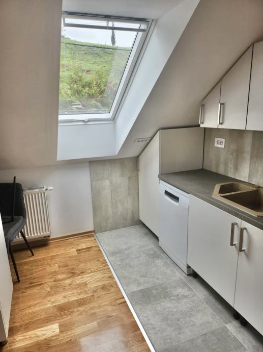 Mansardni stan u kuci, komplet uredjen i obnovljen 2024. Nove instalacije, ppdovi, zidovi, keramika, sanitarije. Nova kuhinja s perilicom sudja, stednjakom, hladnjakom.