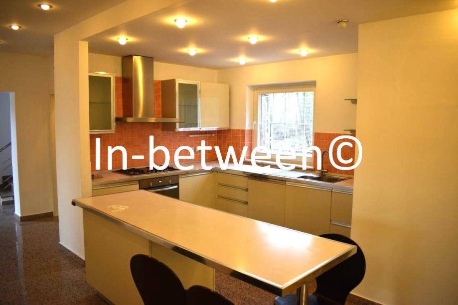 It consists of a basement on the ground floor, first/mezzanine floor and first/second floor, a long garage with an entrance from the street and a large garage in the yard for 2 cars.