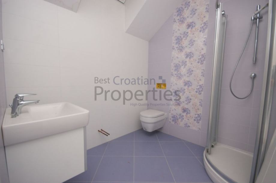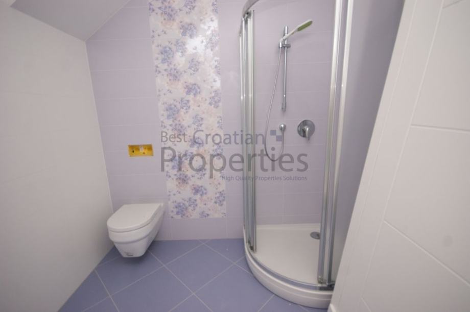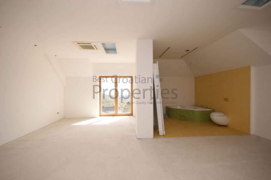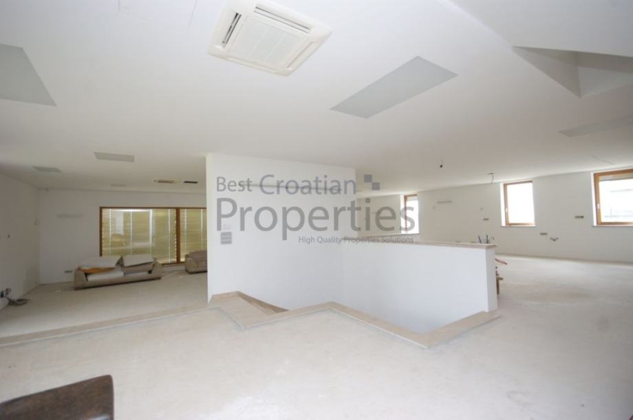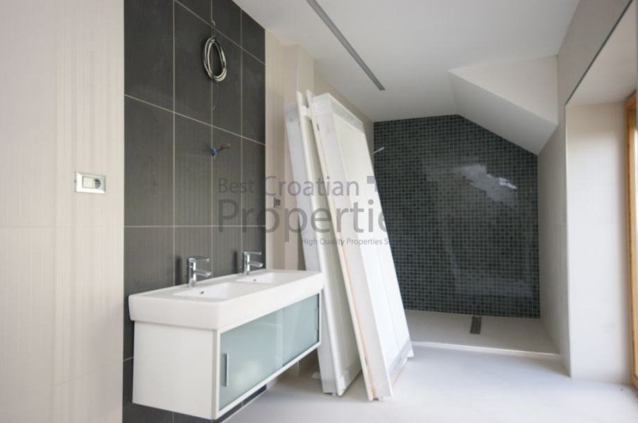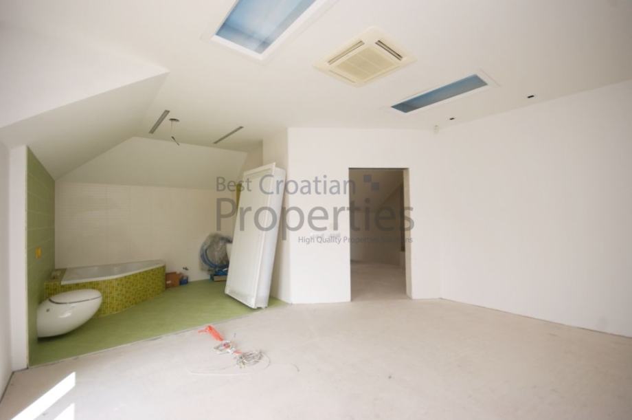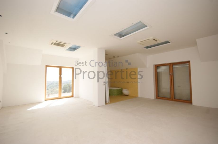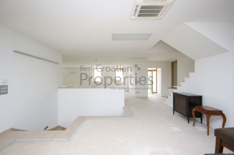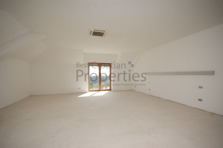 Pri građenju nekretnine pazilo se na svaki detalj i korišteni su vrhunski materijali kao što je vanjska stolarija od ariš-aluminij, kamena štukatura oko prozora i vrata, grijani krov… itd.