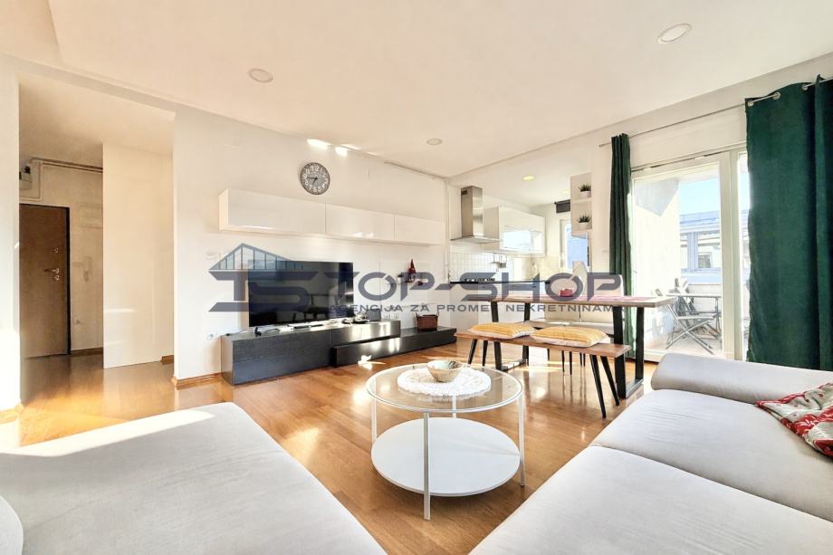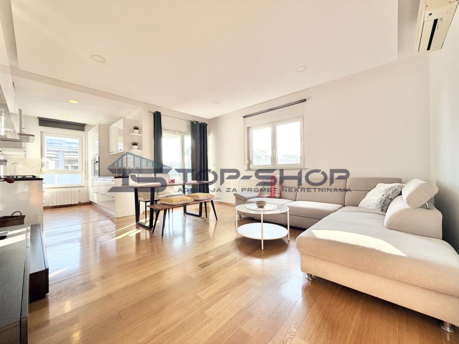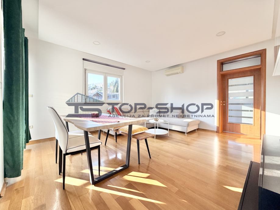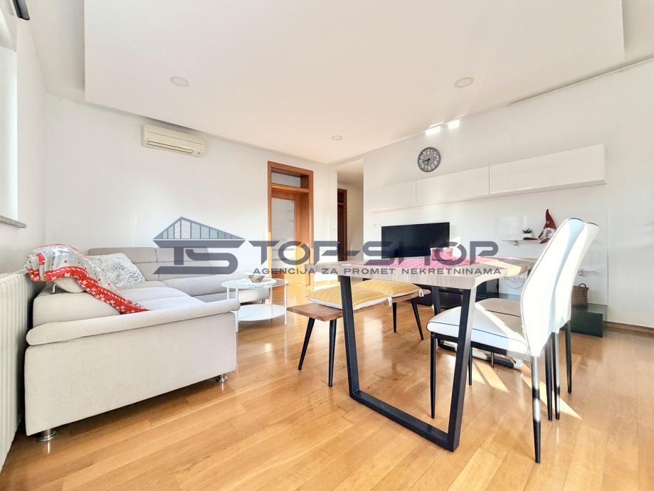 Stan se nalazi na izuzetnoj lokaciji svega par minuta, odličnog funkcionalnog tlocrtnog rasporeda, svijetao radi svoje orijentacije prema istoku, zapadu i sjeveru te velikih prozora s puno dnevnog svijetla, klima, protuprovalna vrata, centralno plinsko grijanje, PVC stolarija...