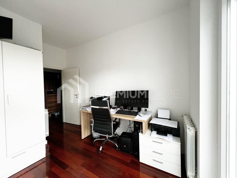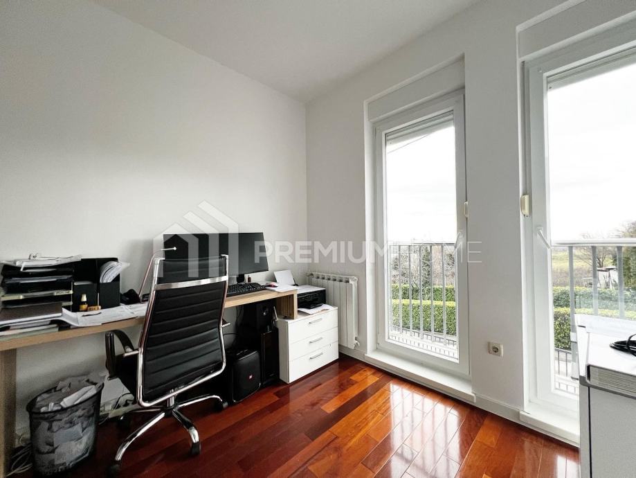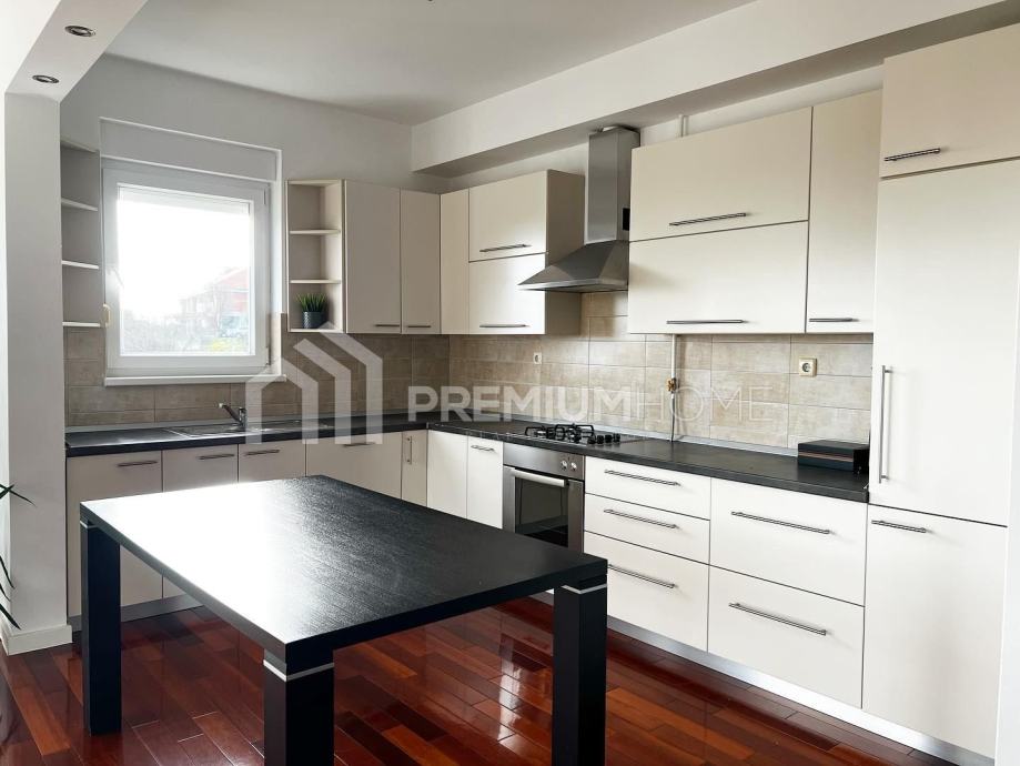 Zagreb, Šestine, ulica Lukšić - prodaje se prekrasan stan unutarnje stambene površine 80.55 m2, s natkrivenim balkonom 8,45 m2 i dva parkirna mjesta u dvorištu zgrade od 11 m2 svako. Stan zbog odlične orijentacije istok - jug - zapad, tijekom cijelog dana ima prirodno svjetlo i predivan pogled na Zagreb i Šestinski vrh a s balkona se pruža pogled na Medvednicu. Stan se sastoji od ulaznog hodnika (6,60 m2), dnevnog boravka, blagovaonice i kuhinj3 (41,27 m2), dvije spavaonice (11,02 i 9,49 m2), kupaonice (3,84 m2) i toaleta (1,84 m2) te jedne manje sobe (6,49 m2) koja može poslužiti kao radna soba ili se koristiti kao garderoba što joj je trenutna namjena.
