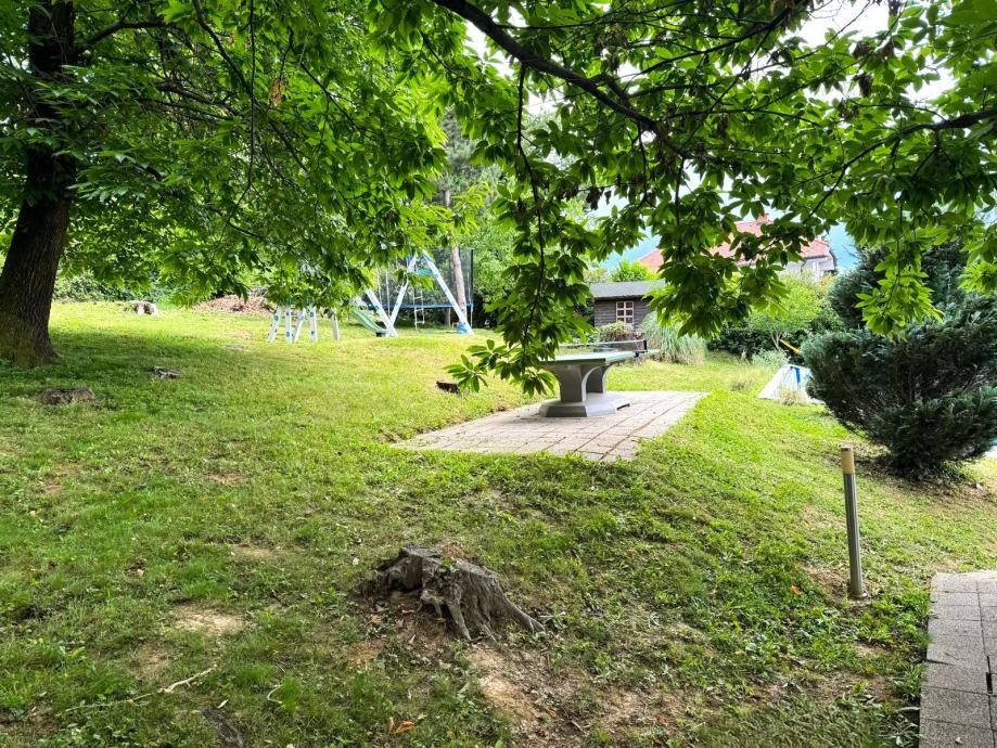 Zgrada u kojoj se stan nalazi pruža iznimno atraktivne zajedničke sadržaje – stanari na raspolaganju imaju bazen, uređeni vrt, prostor za roštilj te vrtnu kućicu, što stvara jedinstvenu atmosferu privatne oaze u podsljemenskoj zoni.