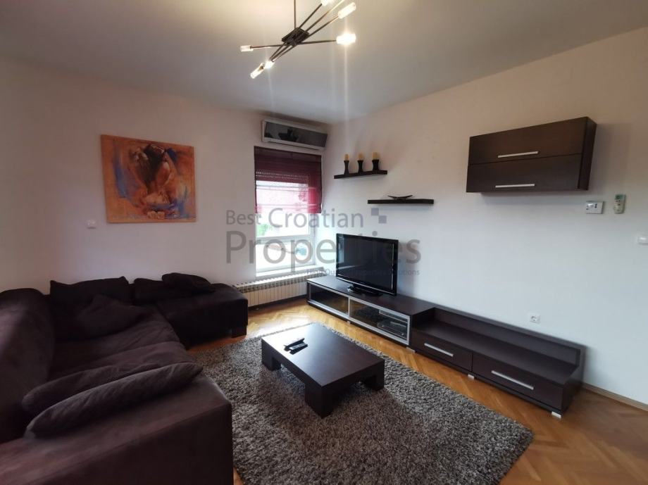 Stan se sastoji od ulaznog hodnika, dnevnog boravka s izlazom na loggiu, blagavaone, kuhinje,kupaone s kadom, spavaće sobe s bračnim krevetom, te manje sobe koja je trenutno prazna, a namještenost ovisi o potrebama budućih najmoprimaca ( dječja, radna...).