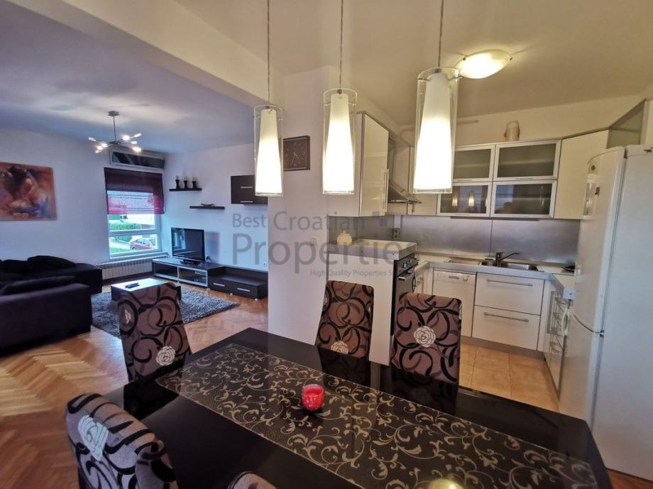 Stan je potpuno opremljen, perilica posuđa, perilica rublja, klima, ugradbeni ormari, TV, protuprovalna vrata...