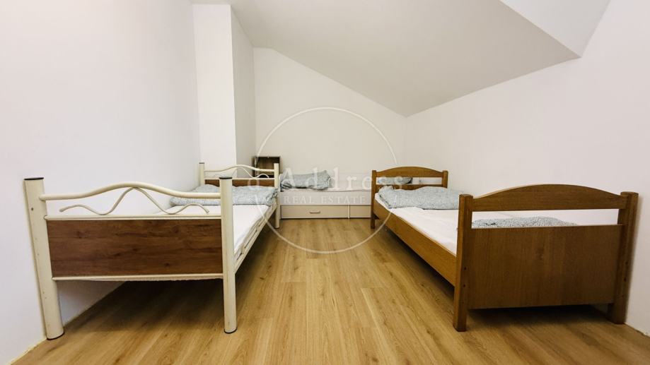 Prostor je trenutno opremljen krevetima na kat te nudi smještaj za 14 radnika.
