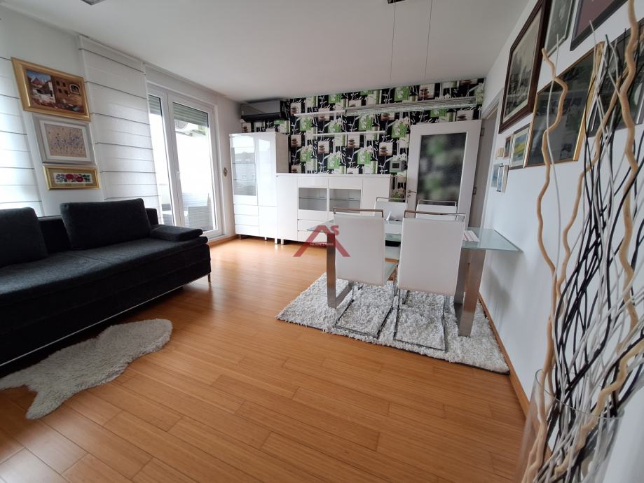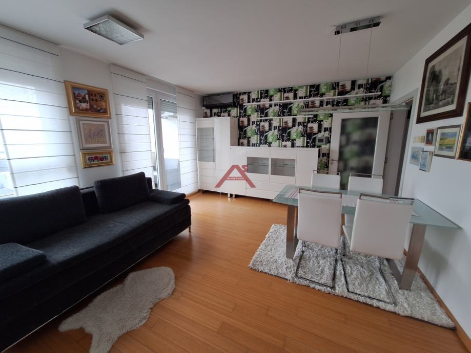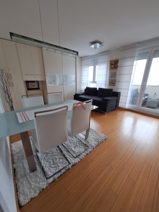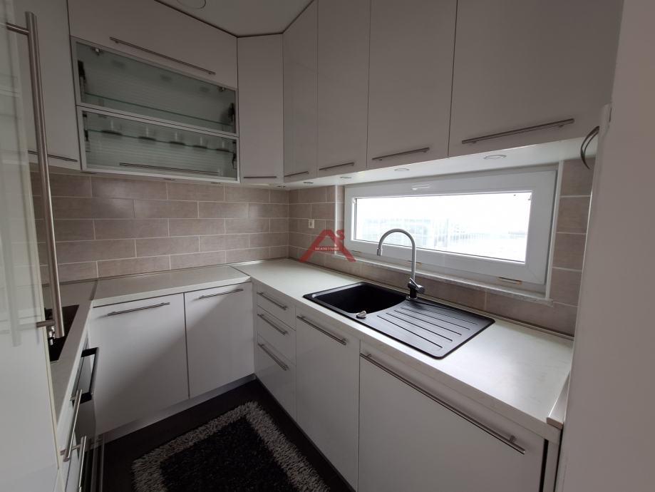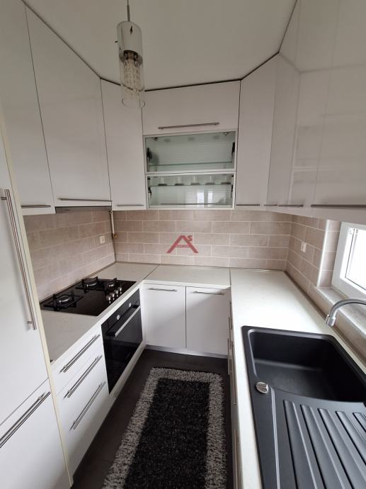 Stan se prodaje kompletno namješten, uključujući ugradbene ormare, kuhinju po mjeri te kućanske aparate renomiranih proizvođača BOSCH i Whirlpool, Faber napu te Blanco silgranit sudoper.