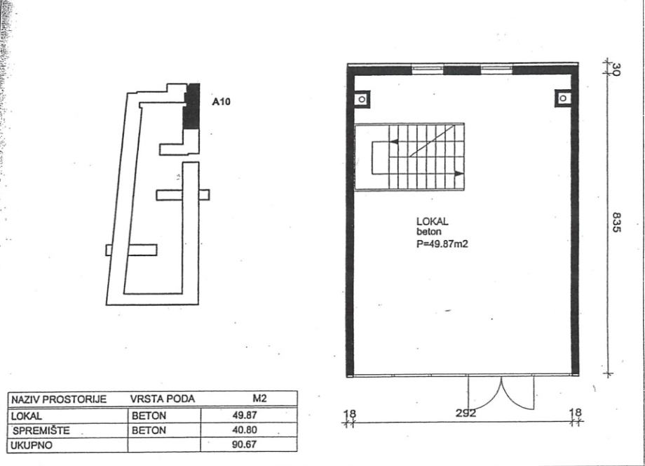 Prostor L9 sastoji se od lokala i spremišta ukupne površine 89,25 m².