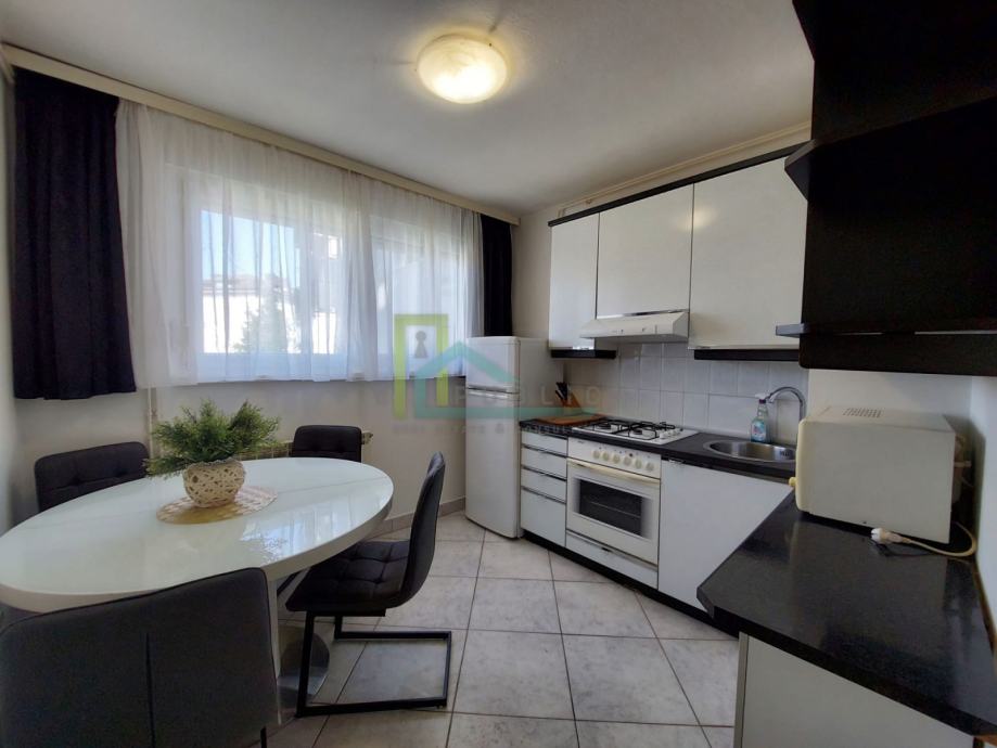 Iznajmljuje se namješten i opremljen dvosoban stan površine 58 m2 na trećem katu stambene zgrade u centru Sesveta.
